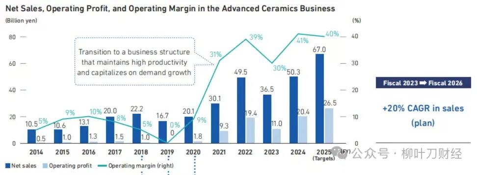 下图:自2021年气,TOTO的利润有了明显的增长。2024年,TOTO半导体相关的先进陶瓷业务净销售额503亿日元,营业利润204亿日元,双双创下历史新高。而且这块业务的赚钱能力非常夸张,先进陶瓷业务营业利润率达到41%,而TOTO整体的营业利润率只有6.7%。换句话说,TOTO最“厚”的利润,其实不在马桶,而在半导体的链条里(图源:柳叶刀财经)