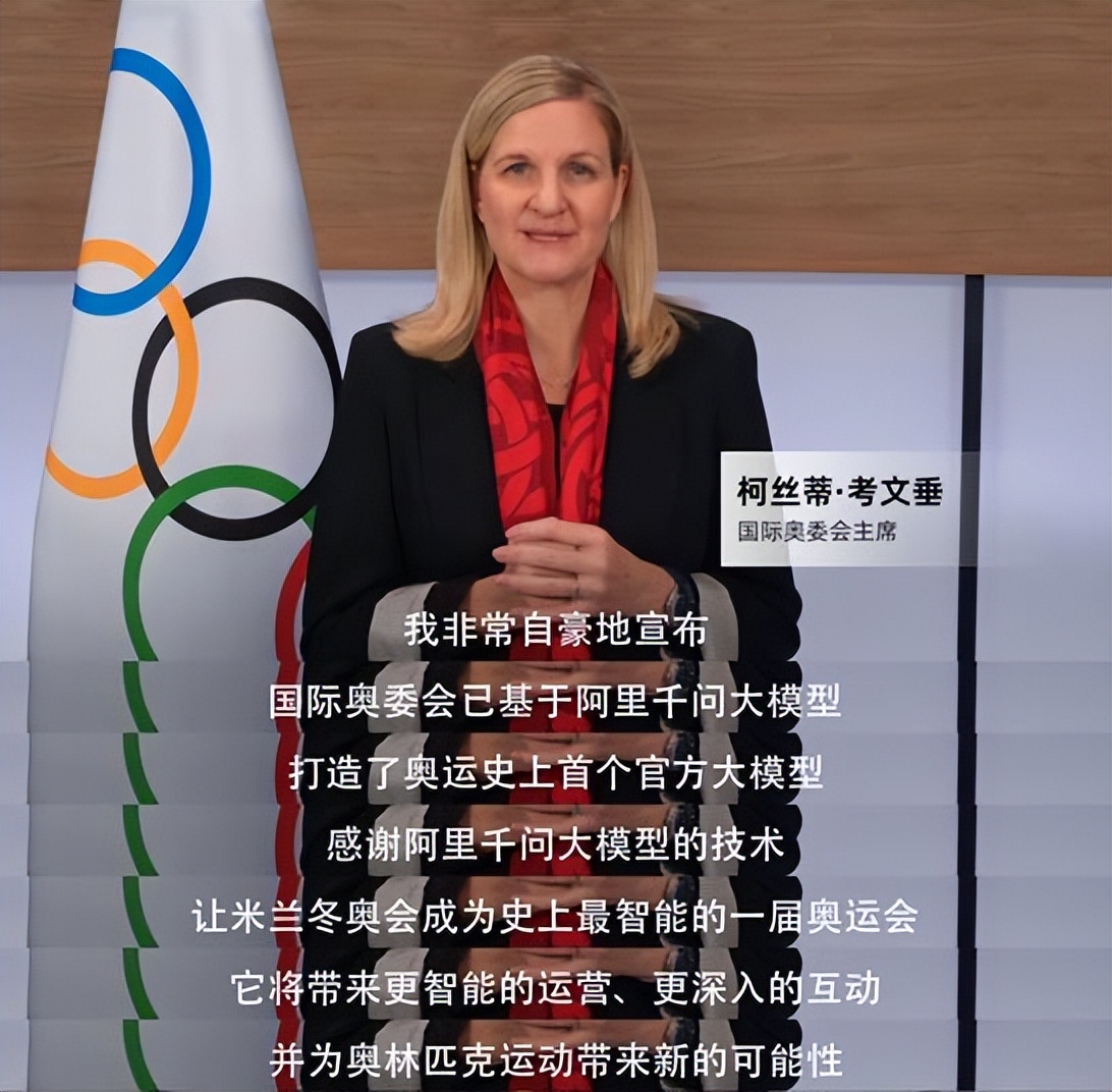 2月5日,米兰冬奥会开幕在即,国际奥委会主席柯丝蒂·考文垂在国际转播中心举行的活动中宣布,国际奥委会已基于阿里千问大模型打造了奥运史上首个官方大模型。考文垂在现场高度评价了AI技术对本届冬奥会的变革性意义。她表示,得益于千问大模型的技术支撑,2026米兰冬奥会展现了奥林匹克运动的智能化未来,将成为史上“最智能”的一届奥运会。