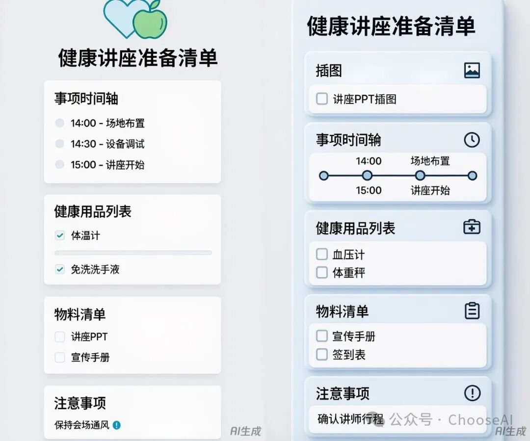 可以发现,第二组图片比第一组美观多了,不仅添加了底纹设计,还丰富了图标和文字内容。