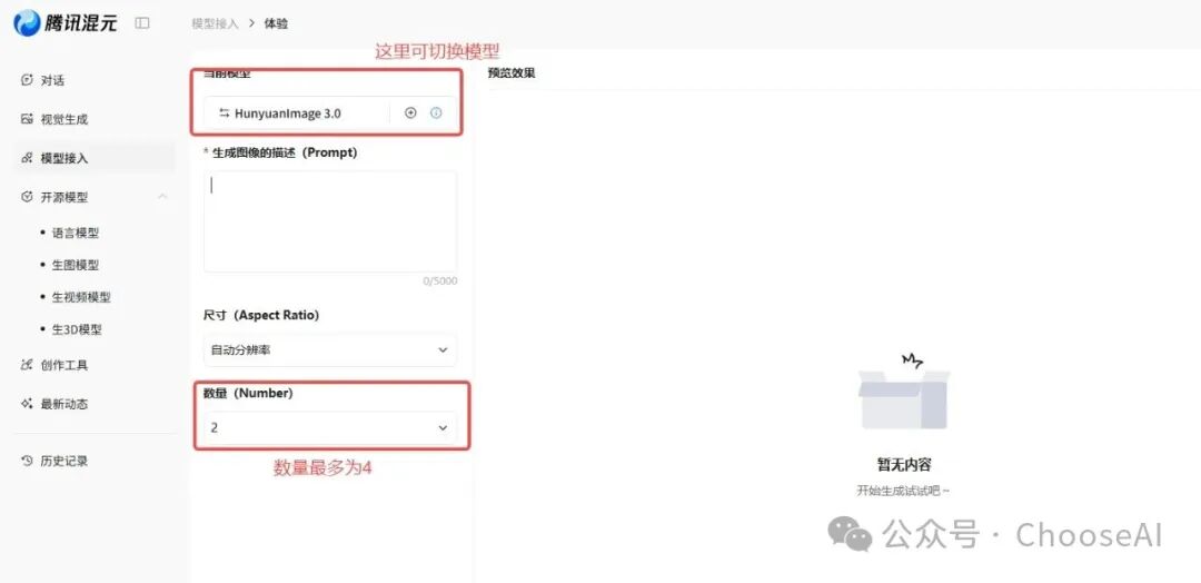 其实很简单,只要你输入提示词,选择尺寸和数量(一次性生成图片的数量,这里最多为4)就行了。