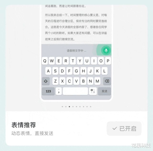 更新后的微信输入法语音输入不限制时长了,提升了转写的稳定性以及准确度,即使是超长的会议,也能轻松通过语音转写进行记录。