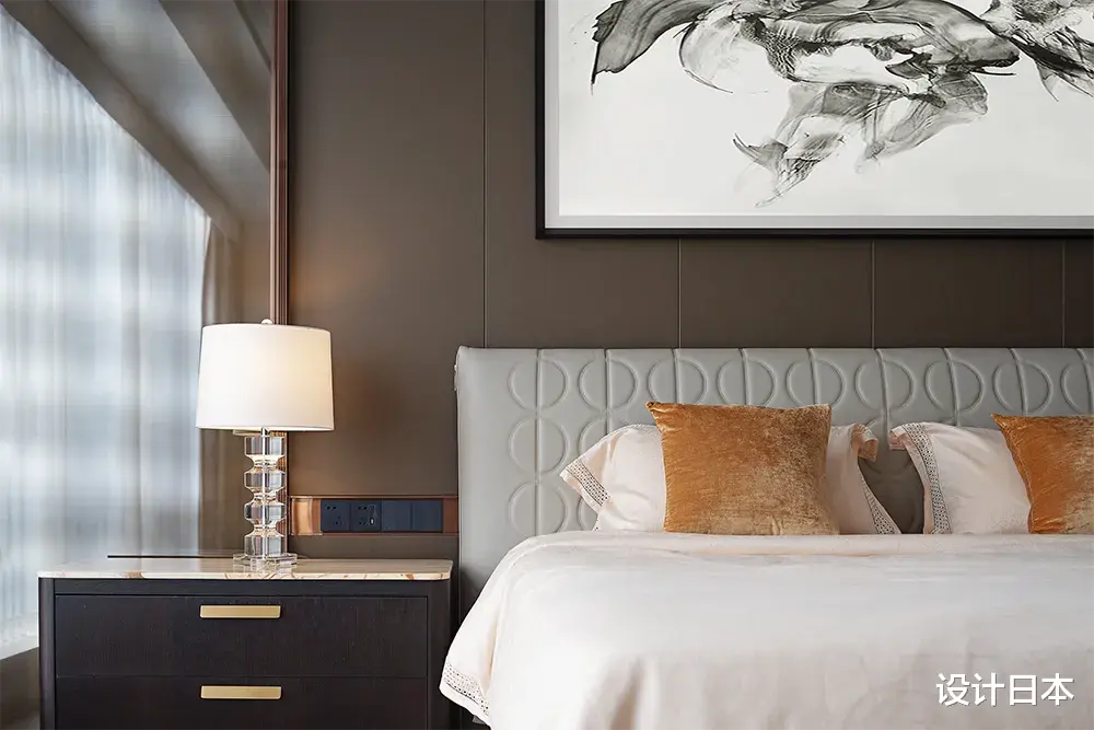 深色调的主卧与窗外的明媚景色形成呼应,制作出如呼吸般轻盈的节奏,带领主人家沉浸式的放松,感受诗和远方。