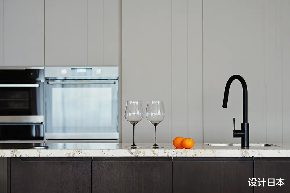 餐厨区衔接在一起,摒弃繁华的装饰,以简洁挥洒人间烟火,串联的动线被悄然抹去,有效提升便捷性。