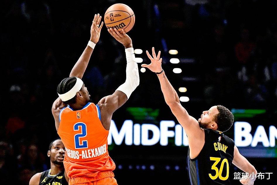 咱先说说这场球的最佳球员亚历山大。这小伙子本赛季已经6次三节打卡,今天又是一样,28分5篮板11次助攻拿得轻轻松松,第三节没打完就下场歇着了。他现在打球真有点随心所欲的意思,面对前DPOY格林,一个脚步就打成2+1;碰到库里、小佩顿这些小个子,中距离说投就投。