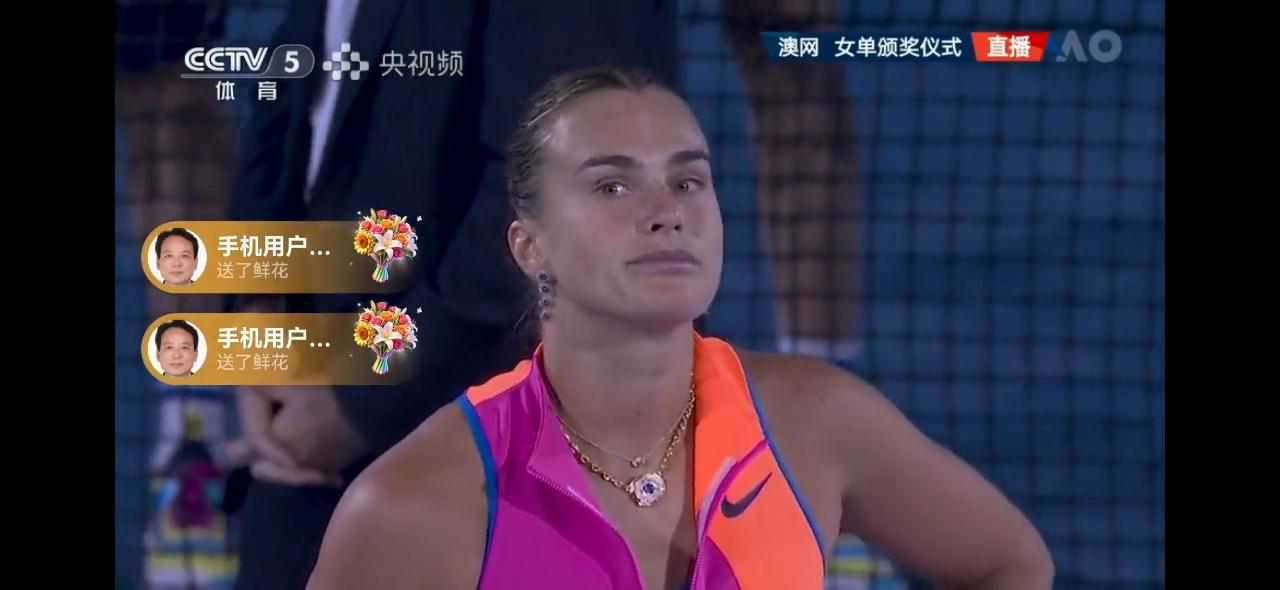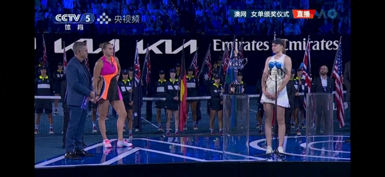 首先也是祝贺了萨伯伦卡的团队以及她过去的这几年的表现。感谢了球迷对她的支持,特别是哈萨克斯坦的球迷在现场对她的支持,也感谢了大会的每一位工作人员。这一段是对自己的团队说的。