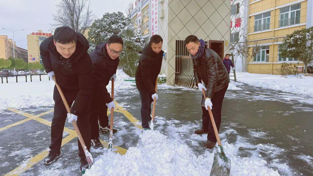 一纸倡议,同心赴约。除雪号召一经发出,学校党支部书记、校长汤保刚同志亲临现场,全程指挥调度。