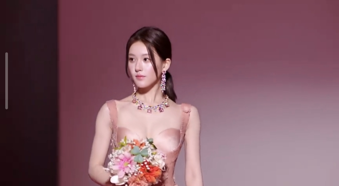 ④ 反差萌:台下小奶猫,台上一键换装,走完红毯不过三分钟,她就火速换装杀回内场,黑丝绒小短裙搭配高马尾,青春又利落。蹦蹦跳跳地跑到王鹤棣身边比大拇指,镜头扫过去的瞬间,刚才还高冷的红毯女王,一秒切换成“社牛甜妹”模式。CP粉直接原地过年,疯狂刷屏:棣露星河是真的!就对视那一下,我人直接没了!