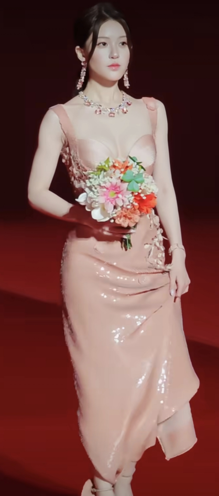 ① 造型杀:一半是月光,一半是火焰,这回她彻底甩开安全牌,上半身是墨蓝色丝绒勾勒出利落线条,下半身鎏金拖尾流光溢彩,腰间镂空小三角的设计堪称神来之笔,分寸感拿捏得死死的。既没丢奶凶奶凶的专属“露思味”,又平添了几分“姐不笑就是全场女王”的强大气场。弹幕里秒变大型真香现场,之前吐槽她撑不起大裙摆的网友,这会儿全在排队道歉:“脸疼!这波必须给造型师加鸡腿!”