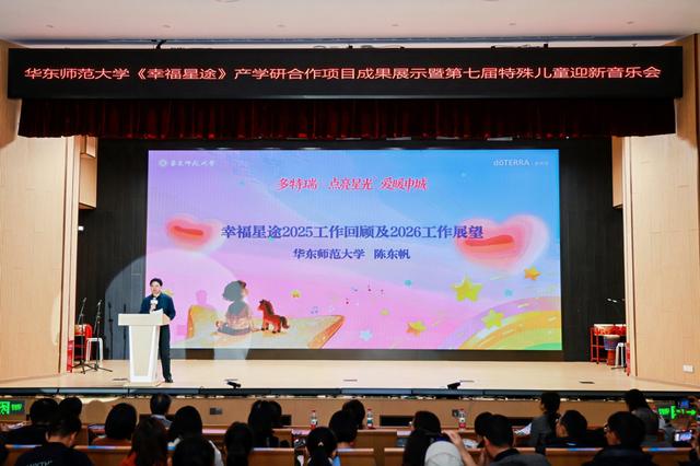1月10日,多特瑞“点亮星光爱暖申城”华东师范大学《幸福星途》产学研合作项目成果展示暨第七届特殊儿童迎新音乐会活动在华东师范大学教育发展大楼举办。活动集中展示了科技助残与社会关爱结合的最新成果,为孤独症儿童及青少年提供了展示才能、融入社会的舞台。