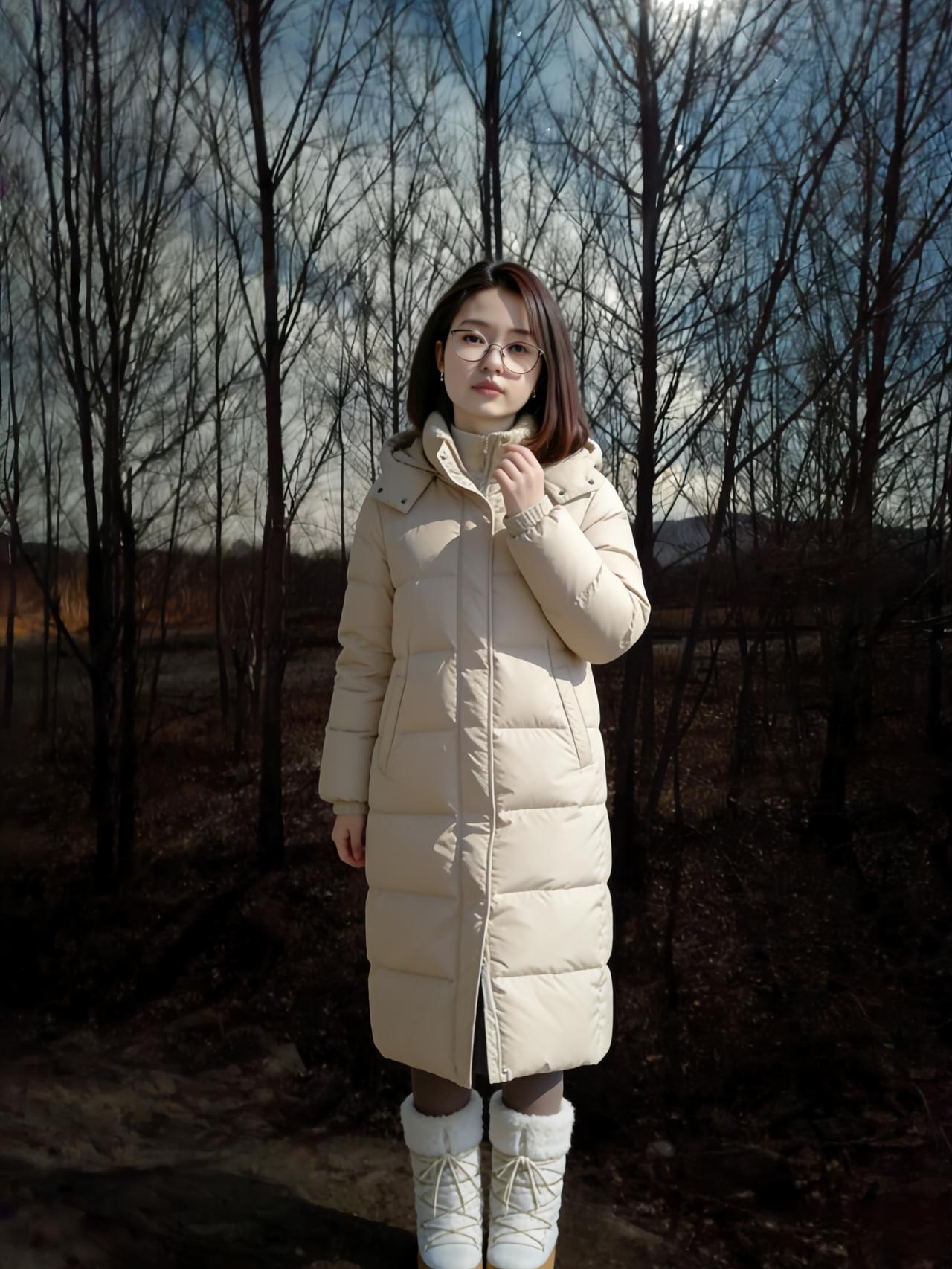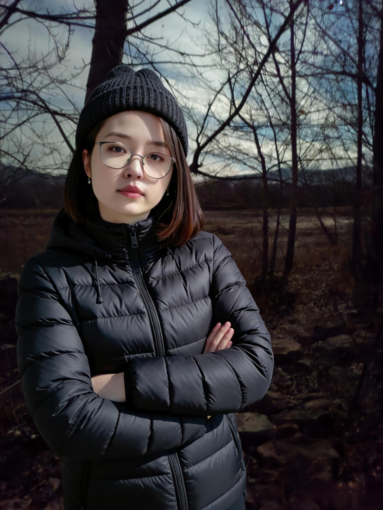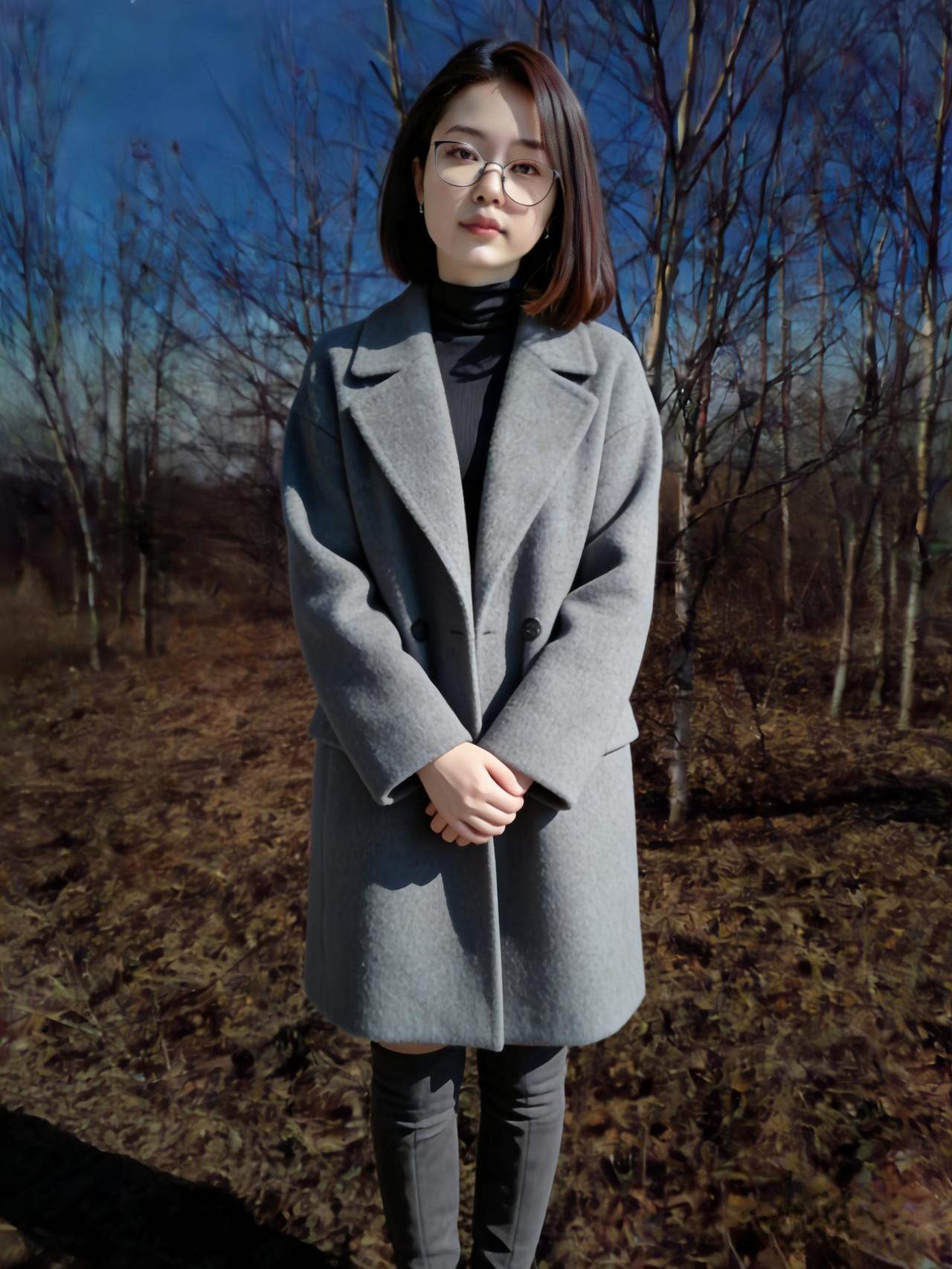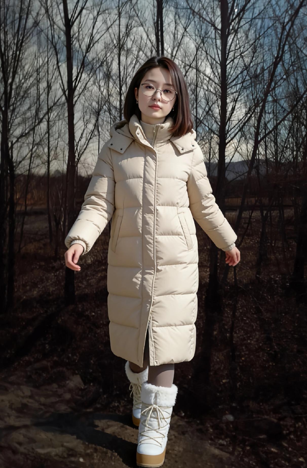 我站在乡村的冬夜河畔,月光是件薄衫 红羽绒服裹着的,是城市回村的心跳 枯树的枝桠,比写字楼的窗棱更真实 风里有秸秆的香,混着河水的凉 撞在脸上,才知自己归了根 ~ 米色的长羽绒服,让我成了河畔的棉絮 白毛靴陷进冻土,陷进儿时的脚印 月光照着,我看见童年的河还在流 只是水瘦了,岸老了,我长大了 伸手摸向河面的冰,像摸时光的硬壳 ~ 毛绒大衣的白,和月光缠在一起 我靠着树,树靠着我,乡野靠着彼此 农村的冬夜,从不需要刻意的热闹 虫鸣是背景,河水是伴奏,月光是灯 我在这里,只是自然的一部分 ~ 黑羽绒服裹着的,是独属于夜的清醒 针织帽压住的,是尘世的喧嚣 双臂交叉,和冬夜的冷对峙,也和解 河畔的石头凉,却凉得踏实 比水泥地的温度,更贴近心跳 ~ 灰大衣的线条,和乡野的轮廓相融 抬手理头发时,惊飞了树桠的雀 它扑棱着,撞碎月光,也撞碎我的拘谨 农村的冬夜,容得下所有的松弛 我站在这里,像一株归了土的草 ~ 月光在河面写满诗行,我是其中一句 农村的冬,荒却暖,冷却真 我的每一件衣裳,都是和乡野的对话 红是热烈,白是温柔,黑是沉静,灰是淡然 在河畔的冬月夜,我找见了自己的底色 ~ 风又起,卷着月光,卷着我的影子 河水流向远方,我站在原地 做乡野冬夜里,最鲜活的那抹人间平凡