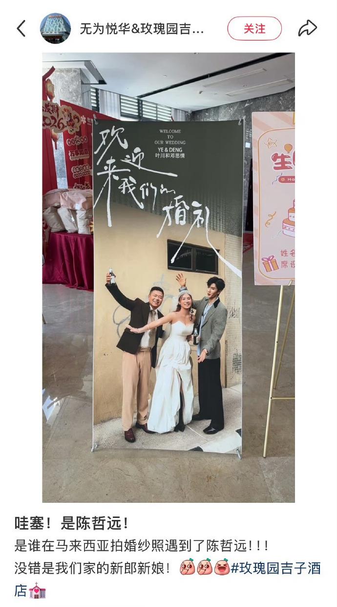 笑拥了,陈哲远偶遇新人拍婚纱照这事还有后续呢!《新郎特意告诉我们把这张放迎宾》[