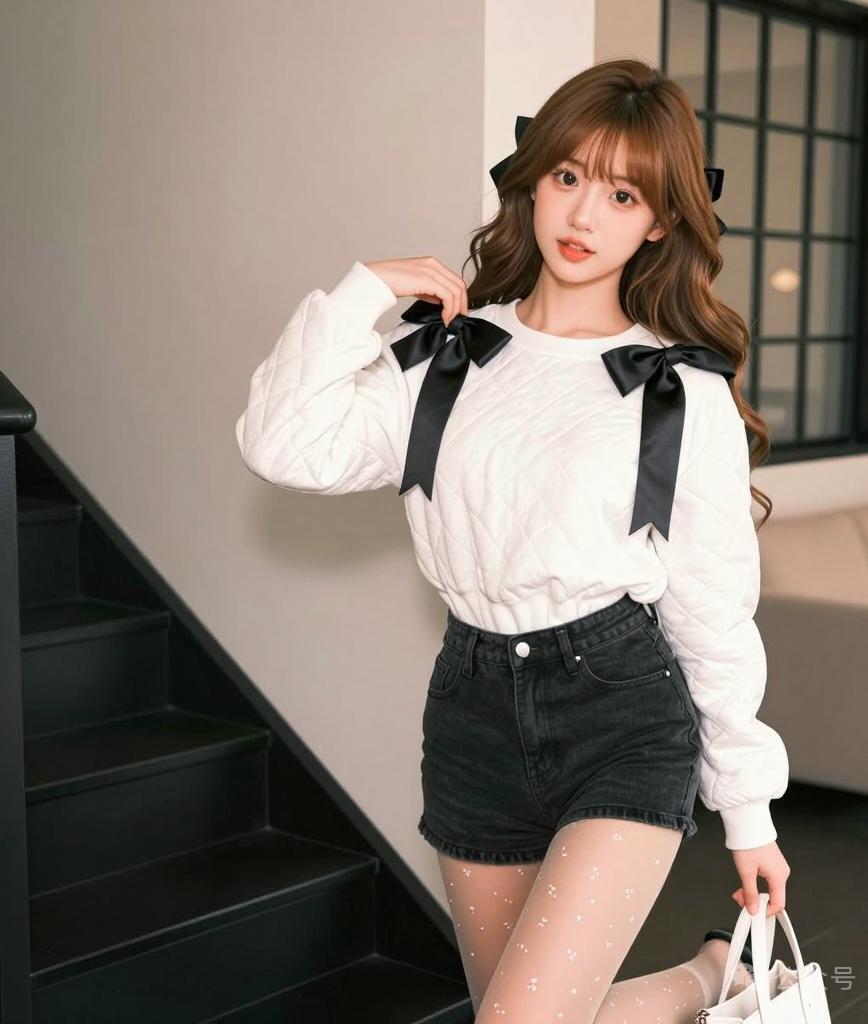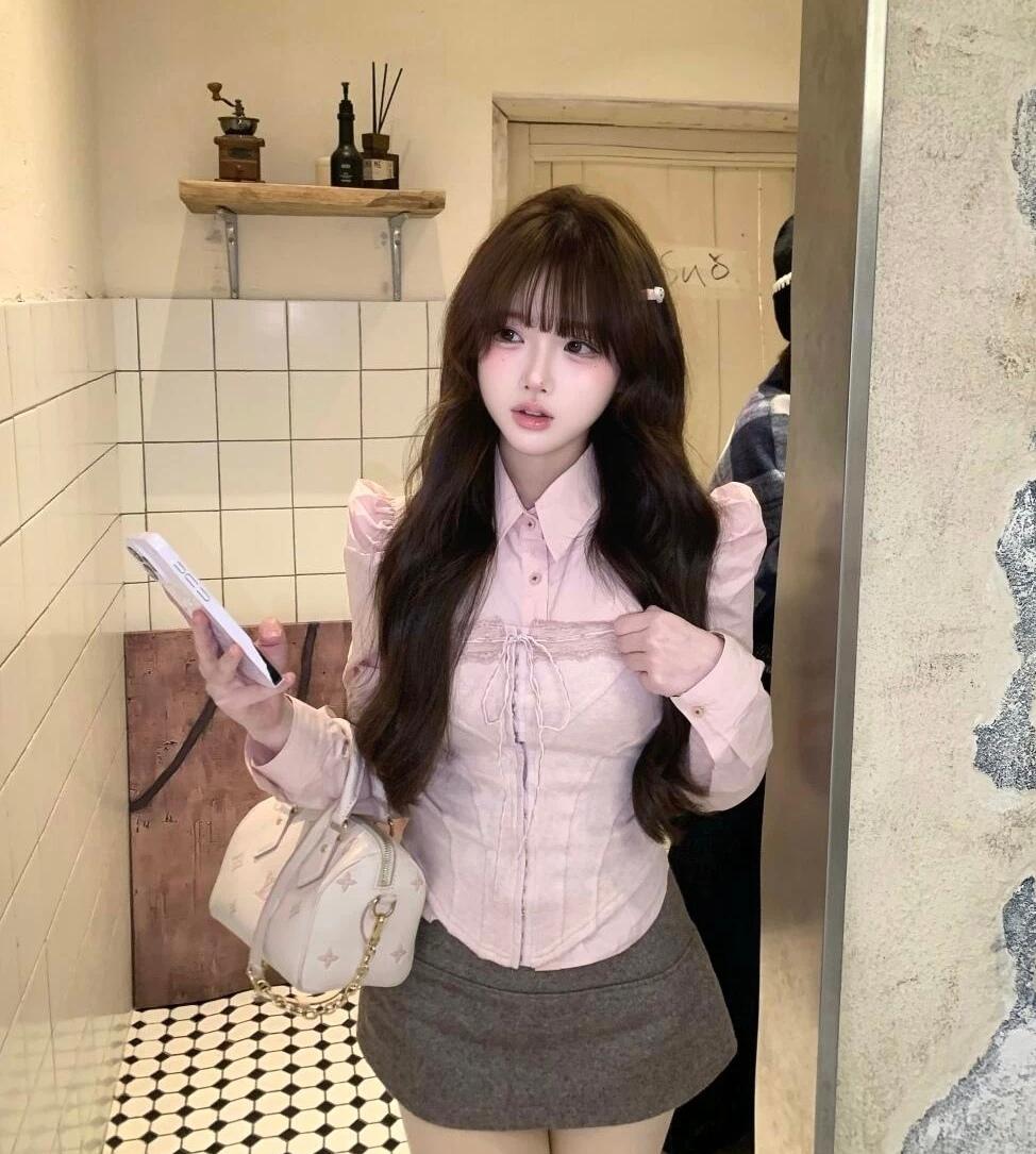 这套穿搭走轻熟名媛风,以上下深浅灰的同色系搭配打造高级层次感:•上衣:浅灰