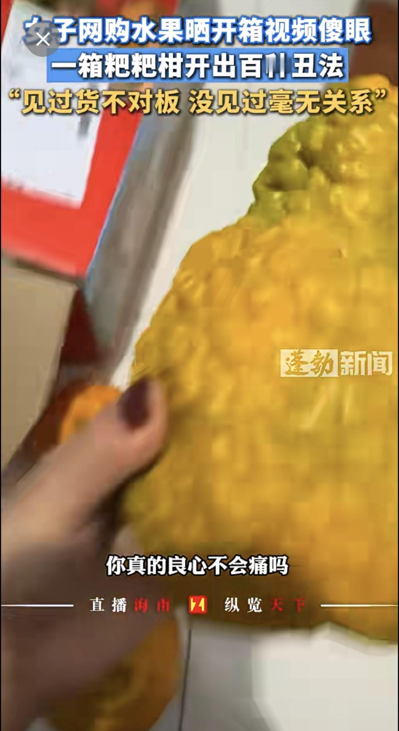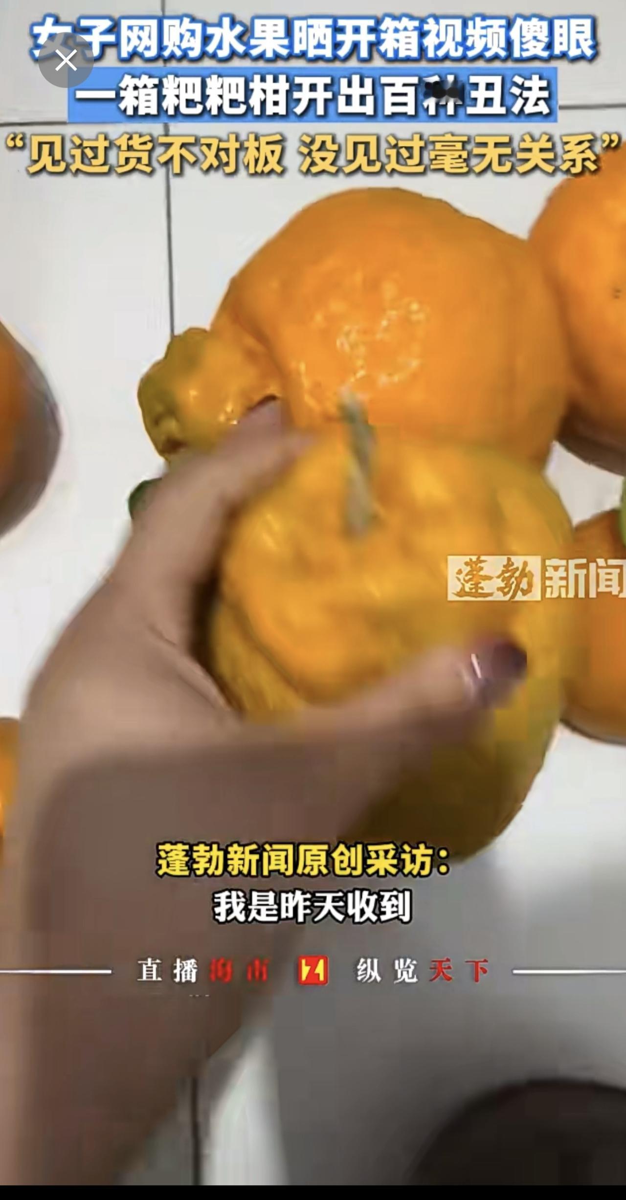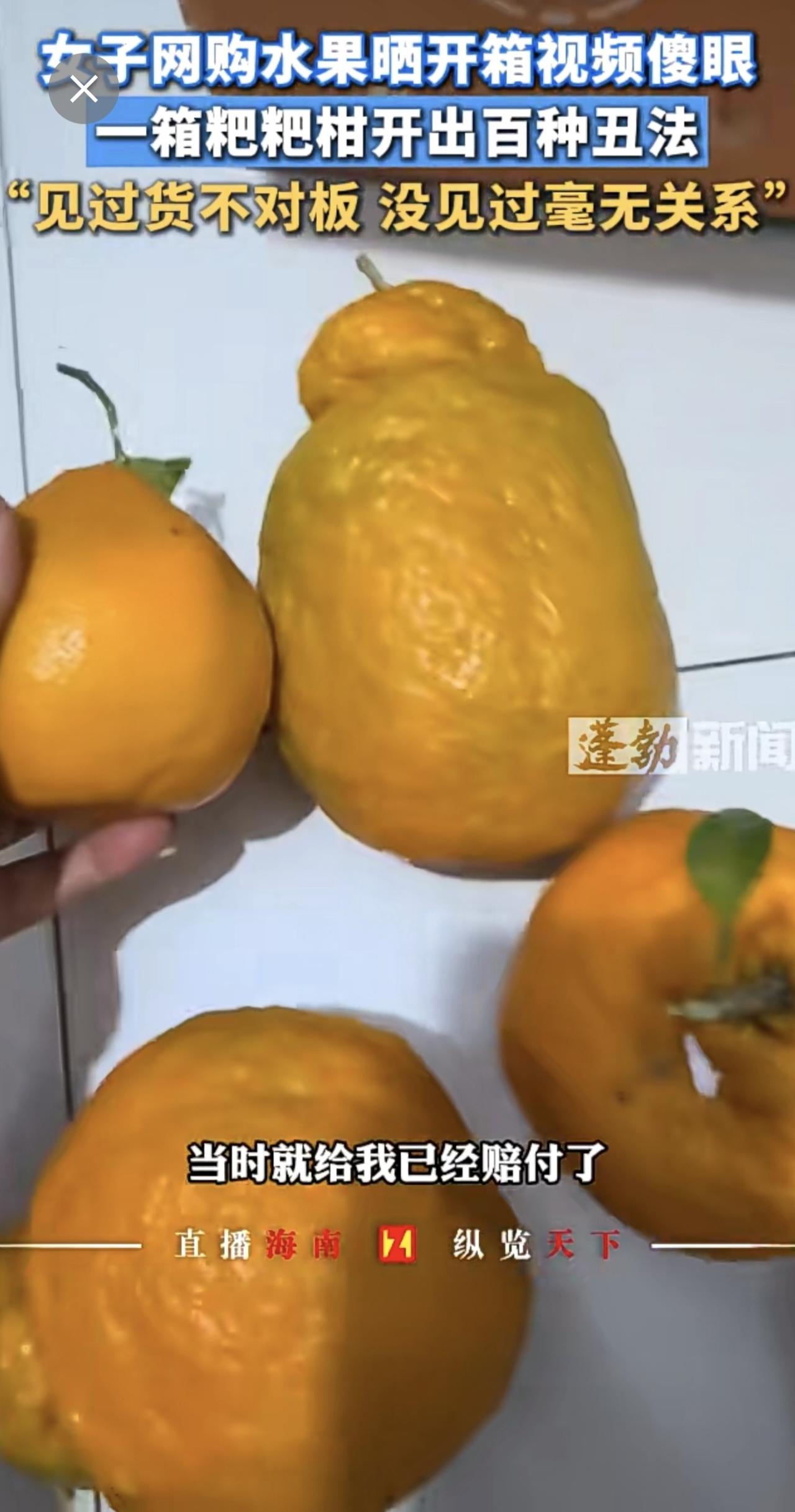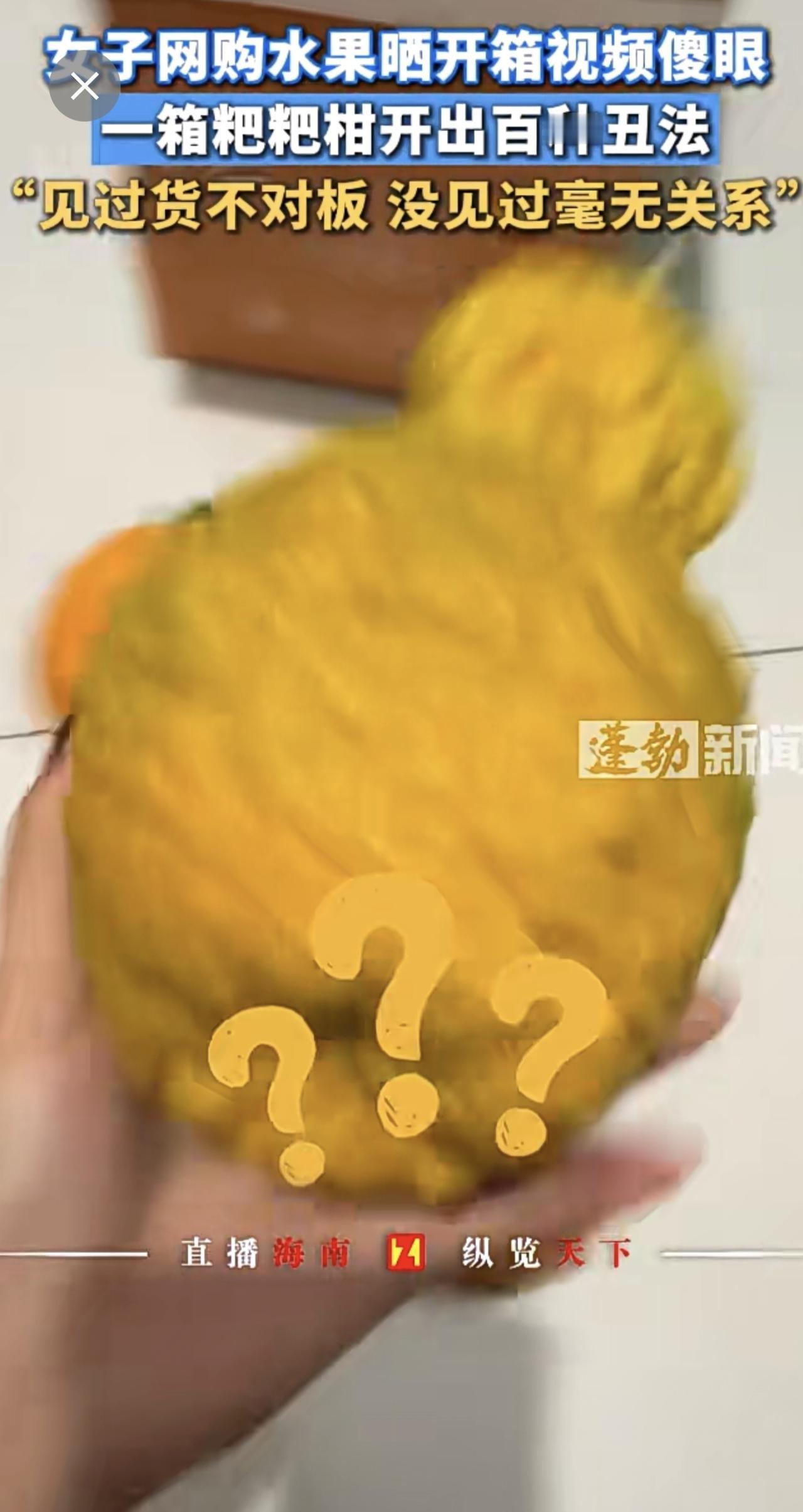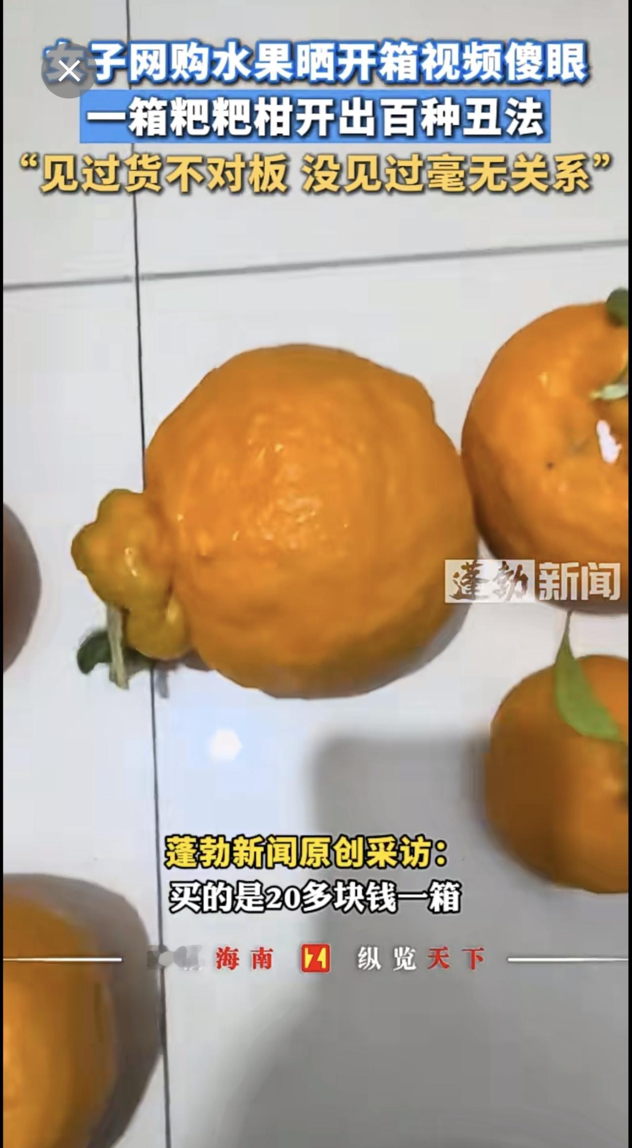 女子网购水果晒开箱视频傻眼,一箱粑粑柑开出百种丑法,见过货不对板,没见过毫无关系