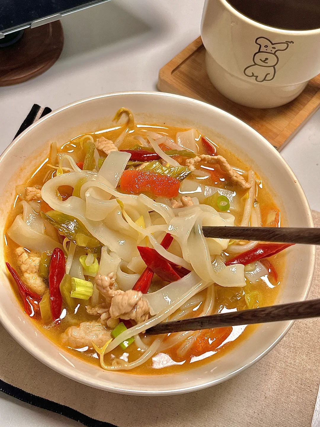 🍴今日份一人食 酸菜肉丝河粉 美式 . 一定要试试这个酸菜肉丝河粉,真的巨好吃😋好吃到连汤都要喝光光[赞R]酸辣开胃 谁做谁好吃😋太香啦~爱吃的宝快去试试呀✌🏻