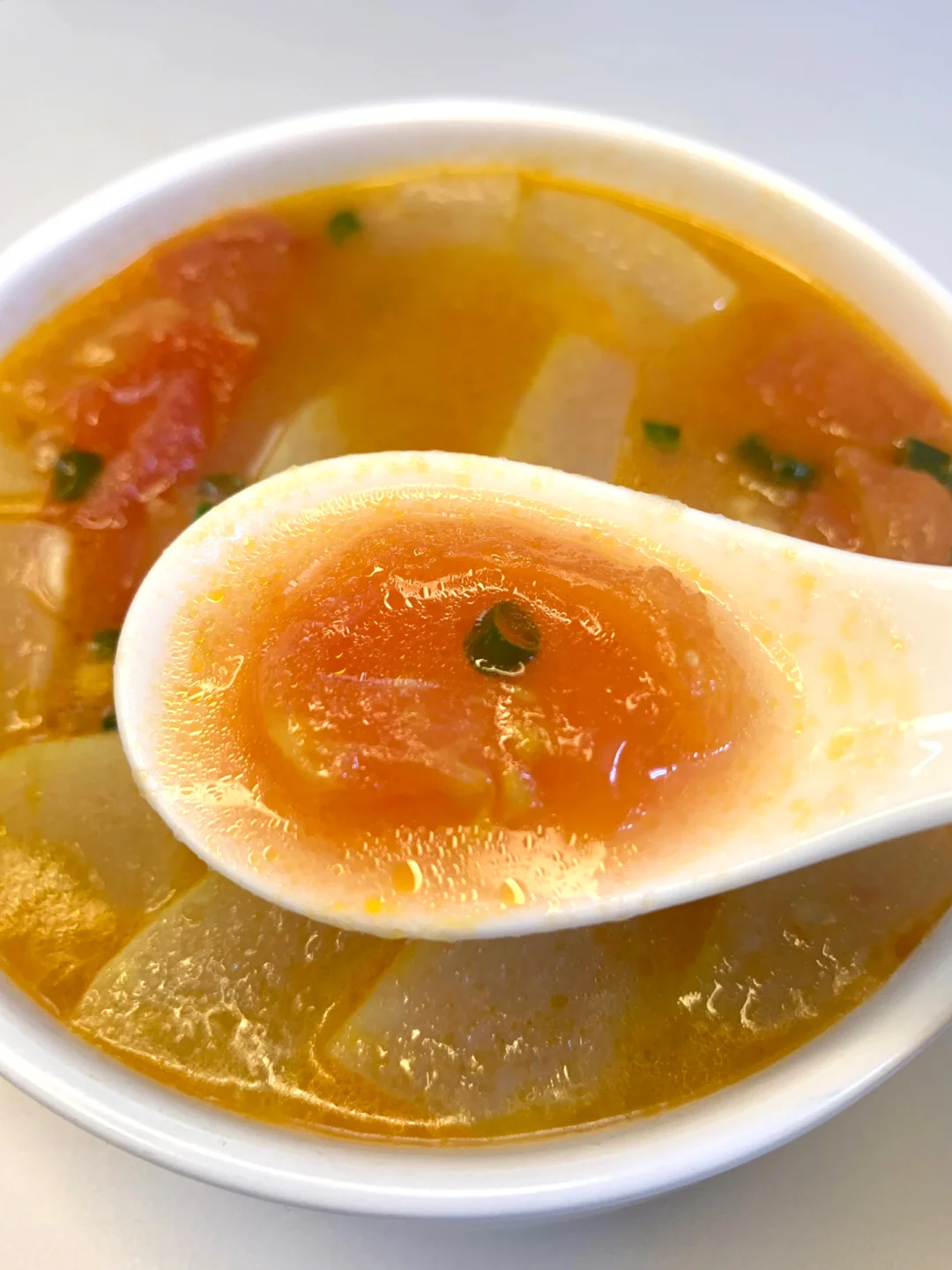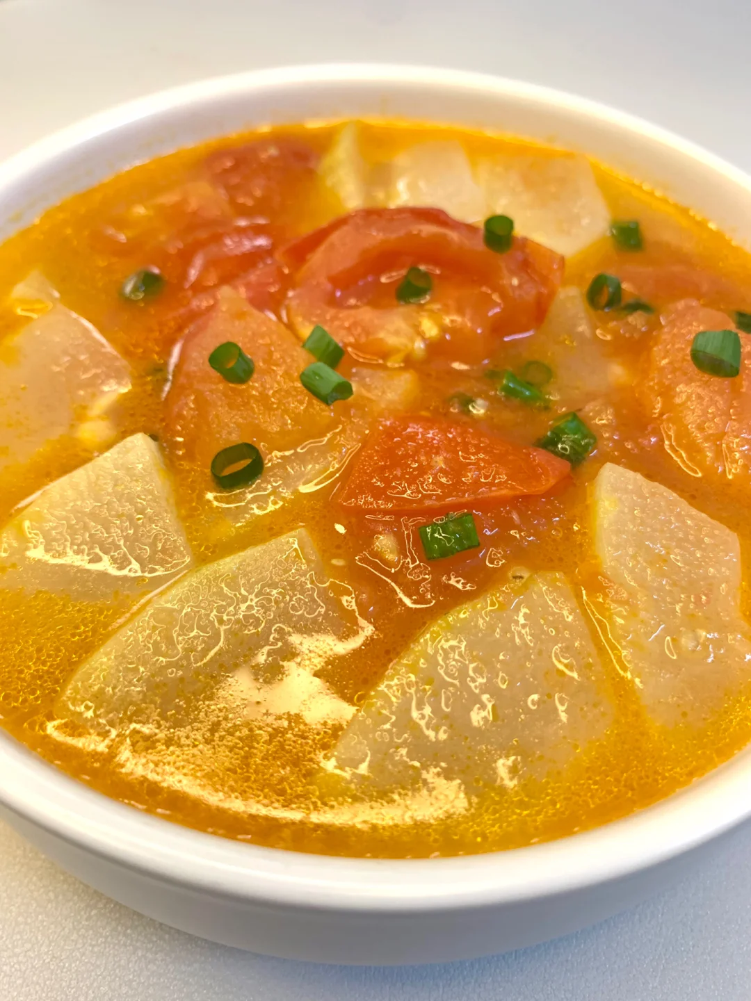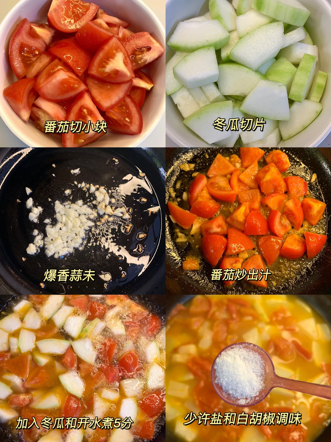 谁说好吃的就一定长胖的?今日分享一款低脂掉称汤,酸酸甜甜的番茄🍅搭配清热解毒的冬瓜,减肥期间真的再适合不过啦~🥣做法超级简单~赶快做起来吧~ ☘️食材:番茄 冬瓜 大蒜 🍀做法:如图所示~