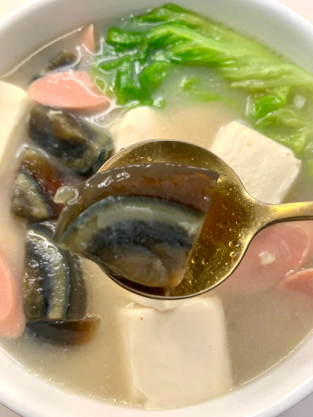 今天分享这个贼掉称的生菜皮蛋豆腐汤!这个汤煮 出来就是奶白奶白的 很有食欲!低脂低卡高蛋白汤 汁鲜甜!我给喝的一口都不剩!安利给所有正在减脂 姐妹们! [开箱R]食材:皮蛋 豆腐 生菜 [开箱R]做法:如图所示~