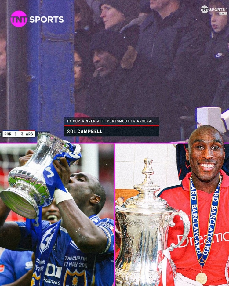 两个都是老东家!索尔·坎贝尔现场观战阿森纳vs朴茨茅斯
