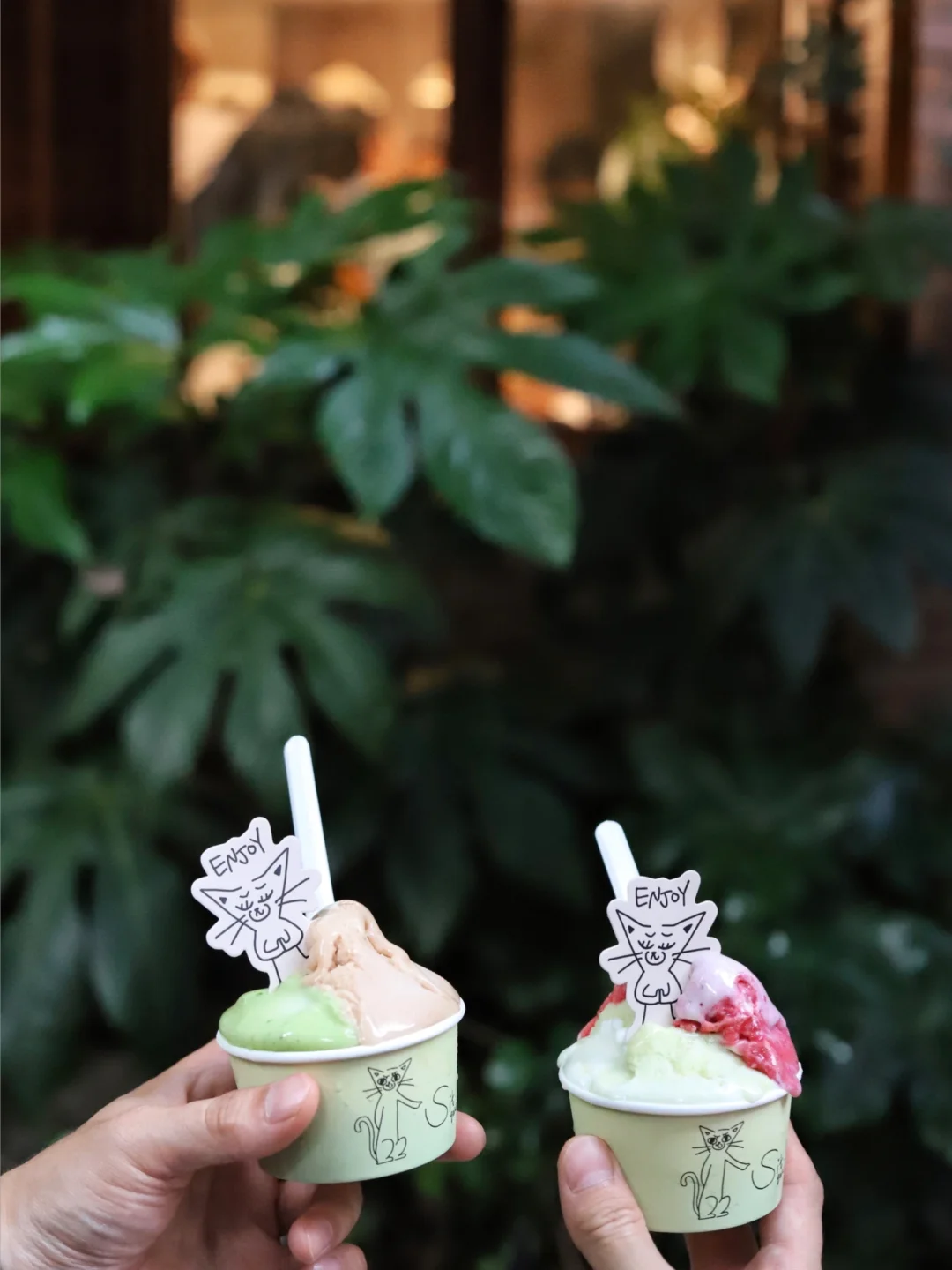 🍰sillage 杨梅蛋糕真的有杨梅果肉的颗粒感 斑斓千层底下是芒果糯米口感蛮丰富 两款蛋糕都是香香软软的 可以小程序提前预定心仪的蛋糕喔 - 🍦sit gelato 他们家的gelato属于果味充足奶味不是很充足的 应季的杨梅口味比较淡 最喜欢的依旧是绿番茄奶酪很清新还有奶酪拉丝口感