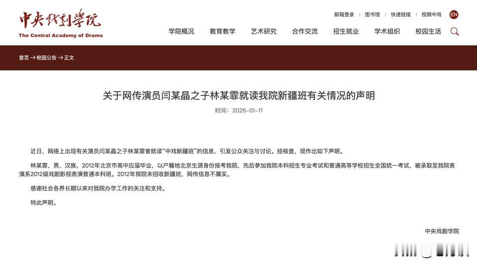 中央戏剧学院关于林某霏是不是新疆班作出了澄清!林某霏不是 2011 年的毕业生,