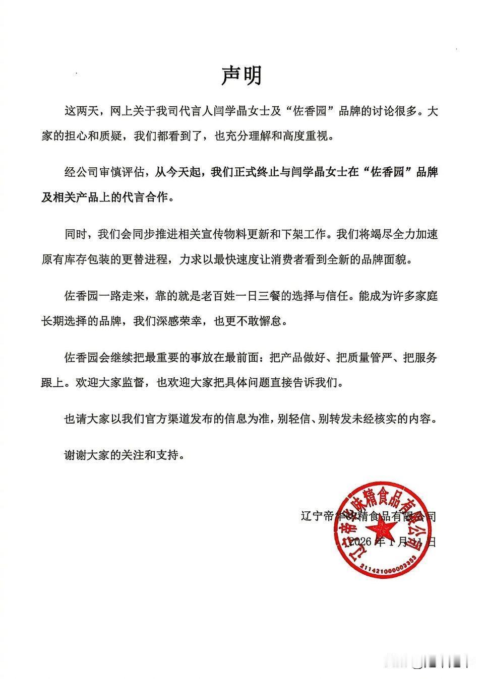 闫学晶“哭穷”代价有多大?!😨 首先就是她代言的调味品品牌佐香园在舆论发酵后火速发布声明终止合作,要求撤除所有宣传物料并销毁印有其形象的库存包装。而与他合作超十年的统厨品牌更因消费者抵制导致全线停产,损失惨重,统厨品牌方明确表示将向其追讨包装耗材、停产损失及名誉损害赔偿。 据行业估算,若是法院判决闫学晶告负,她需退还代言费并支付违约金,金额在1800万至3600万元区间。若更多合作方跟进解约,损失规模将进一步扩大。 其次抖音、快手等平台以违反社区规定为由,对其账号标注禁止关注,冻结了新增粉丝通道。 其抖音账号(粉丝超2000万)、快手账号(粉丝超355万)流量变现化为灰烬。闫妈严选"直播品牌橱窗商品全部下架,单场动辄数百万的带货收入戛然而止。还有网络信息显示,原定与郭冬临搭档登上2026辽视春晚的节目,因观众反对声过大被紧急叫停;央视春晚推荐名单中也再无她的身影,多年积累的春晚常客身份化无乌有。 出道以来,闫学晶一直都是以饰演穷人和小人物出名,特别擅长演绎吃苦耐劳、善良坚韧的农村女性形象,甚至荣获“催泪剧一姐”的美誉。万万没有想到在现实生活中,她竟然是这么一个觉得每年赚几十万就是“揭不开锅”了富婆,让大家对其产生了巨大不适感。53岁的闫学晶,这次恐怕要彻底凉凉了。人生如戏,戏如其人,演员的表演往往是艺术角色与真实自我的碰撞。一个演员的口碑塌陷了,艺术生命也就枯萎了。这也印证了赵本山早年对她的忠告:永远别变味,才能走得远。 闫学晶虽然公开道歉了,但艺德比演技更重要,接地气有人支持才能走得远!