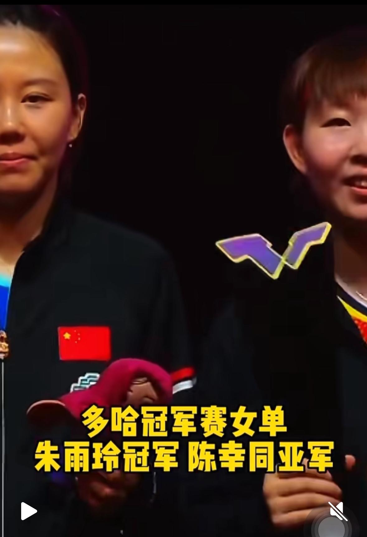 颁奖仪式上朱雨玲和陈幸同都笑容灿烂 2026多哈冠军赛, 朱雨玲4:2陈幸同夺冠🏆, 颁奖仪式上, 陈幸同微笑😊着肯定自己! 朱雨玲则抑制不住内心的狂喜, 笑容灿烂! 恭喜陈幸同, 恭喜朱雨玲! 陈幸同赢了张本美和,蒯曼, 她们的多板相持打出了几十板, 绝对是神仙球, 曾经的世界第一, 复出后再得冠军🏆, 第三个冠军, 陈振江教练给出的技战术非常有效, 教练也是满脸笑容😊! 陈幸同很励志, 顶住压力,打败美和就是冠军!