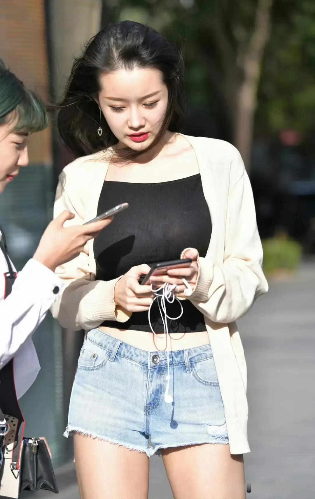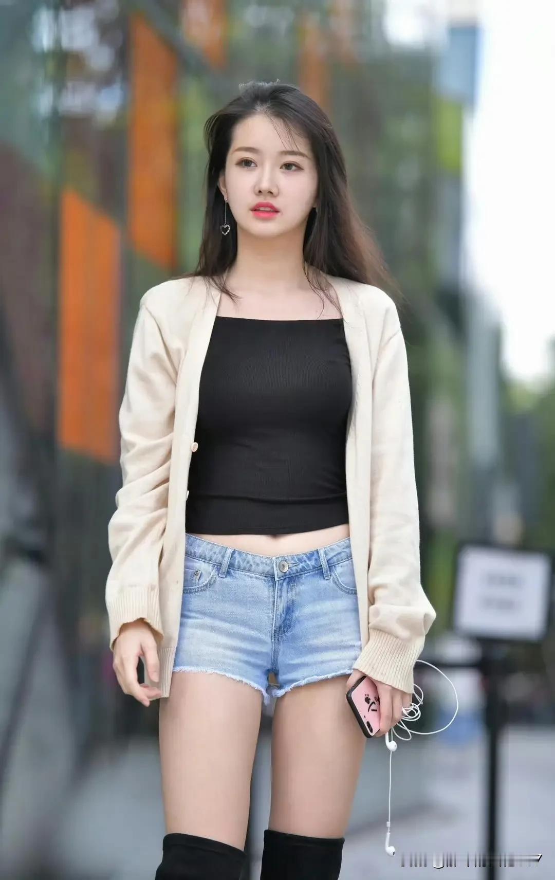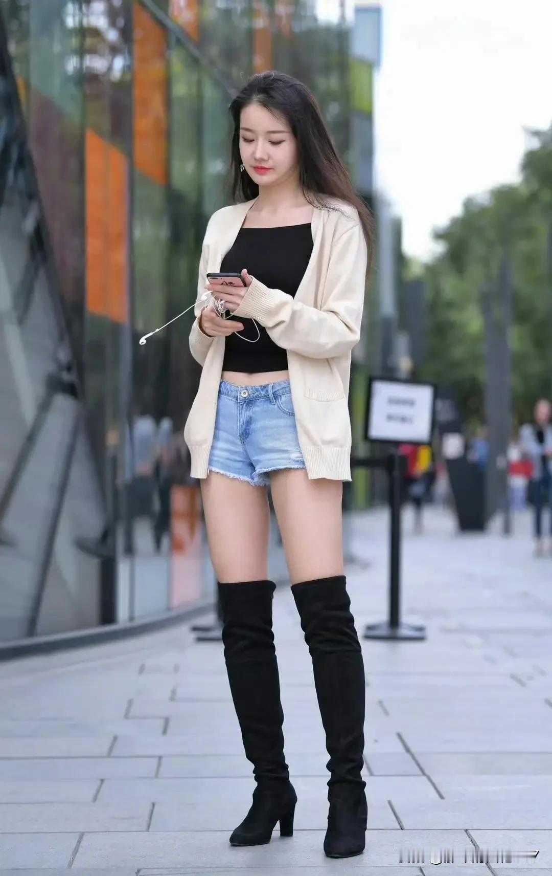都市街头这套牛仔短裤+米色开衫+黑色长靴穿搭,真的时尚又舒适! 米色宽松针织开衫内搭黑色短款抹胸,开衫遮肉,内搭露腰线,一松一紧优化身材比例。浅蓝色破边牛仔短裤配黑色过膝长靴,短裤露腿,长靴拉长腿部线条,视觉上腿长直接翻倍。 开衫选到胯部的宽松款,避免压个子;牛仔短裤选破边不紧身的,搭配长靴时露3 - 5cm大腿最显腿细;内搭选纯色基础款,和开衫简约撞色。日常逛街、约会穿,甜酷混搭风轻松吸睛!
