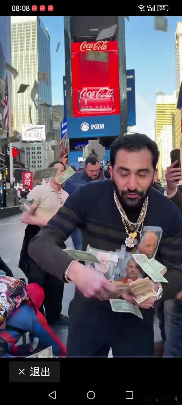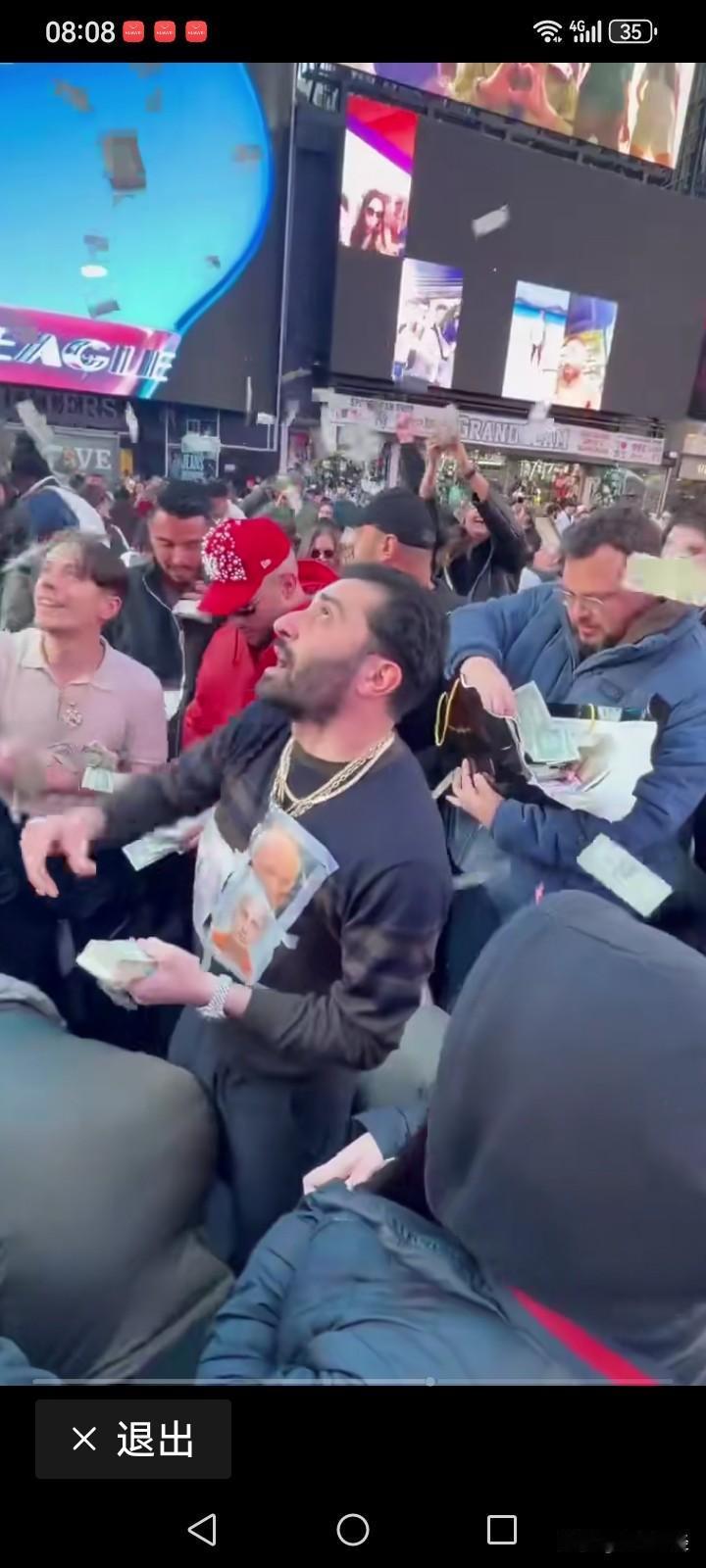 美国富豪可真是财大气粗啊! 在熙熙攘攘的大街上,路人裹着鸭绒袄,富人却身着T恤衫,还向路人撒钱。难道资本主义也会有这般温暖的冬日景象?