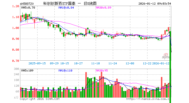 1月9日,科创创新药ETF国泰(589720)涨3.83%,成交额1.49亿元。当日份额增加300.00万份,最新份额为6.53亿份,近20个交易日份额减少1.03亿份。最新资产净值计算值为6.55亿元。