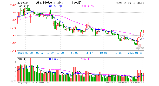 1月9日,港股创新药ETF基金(520700)涨1.52%,成交额2.81亿元。当日份额减少100.00万份,最新份额为5.88亿份,近20个交易日份额增加2400.00万份。最新资产净值计算值为9.89亿元。