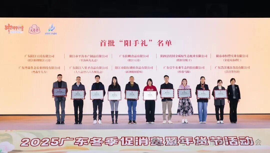 ▲阳江市委副书记、市长余金富;广东省商务厅党组成员、副厅长何军;阳江市人民政府副市长郑伟珍;阳江市人民政府秘书长、办公室主任梁道枫;阳江市商务局局长凌凤萍;阳江市文化广电旅游体育局局长陈颖瑜;阳江市市场监督管理局局长许永券;阳江市工商联(总商会)会长李积回;中国银联广东分公司地市部总经理陈勇;苏宁易购阳江公司总经理吴国华;阳江市汽车协会会长黄伟忠;阳江市餐饮行业协会会长苏鸿坤等共同上台推动拉杆,正式启动“2025广东冬季促消费暨年货节”。