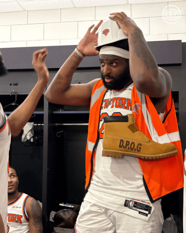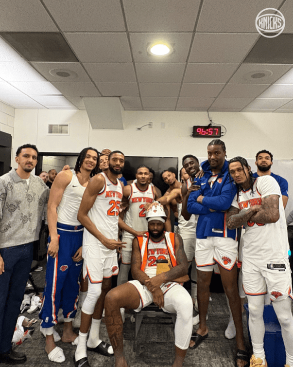 防守大闸!尼克斯官媒晒米切尔-罗宾逊赛后照:本场最佳防守