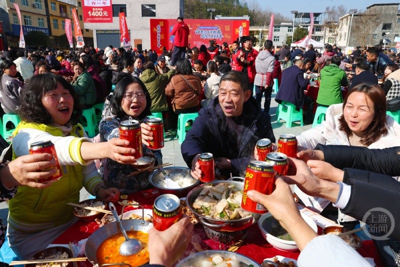 上千名游客体验土家族传统杀年猪、吃刨汤的年文化,感受当地发展武陵黑猪产业取得的乡村振兴成果。