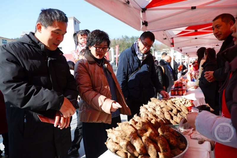 游客在选购当地特色农产品。