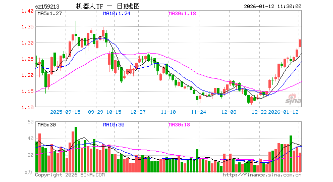 1月12日,截止午间收盘,机器人ETF基金(159213)涨2.51%,报1.309元,成交额2957.15万元。机器人ETF基金(159213)重仓股方面,汇川技术截止午盘涨2.94%,科大讯飞涨8.38%,石头科技跌0.91%,大华股份涨3.66%,中控技术涨7.07%,大族激光跌0.90%,双环传动跌0.63%,科沃斯涨2.70%,机器人涨3.44%,云天励飞涨5.66%。