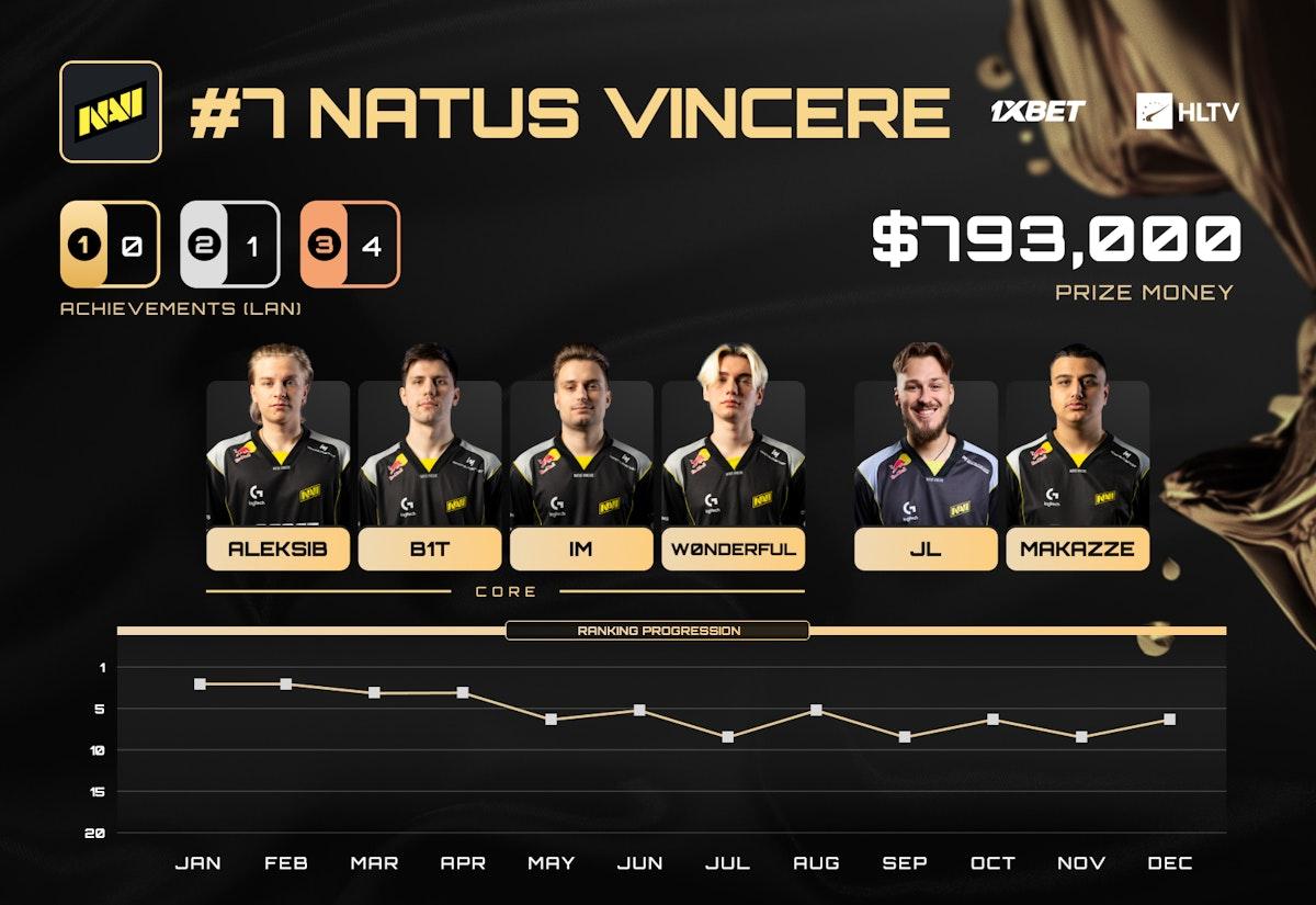 然而此后形势急转直下,连续三场赛事表现低迷,显然他们需要付出巨大努力才能重拾顶尖战队的风采。为此他们在StarLadder明星系列赛秋季赛前进行了集训——虽然该项赛事本身不计入本次排名,但为NatusVincere在年终最后几个月重建了亟需的信心。