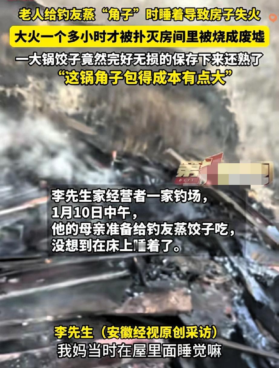 一锅饺子竟烧没了整套房子! 江苏徐州这场火灾真的又揪心又让人哭笑不得。 老人给钓场钓友蒸饺子,累得躺床上眯会儿,结果睡沉了忘了灶上的火。 当天风大,火星被吹出去引燃了屋子,消防员救出人后扑了一个多小时,家里已经烧得只剩废墟。 最离奇的是,灶上那锅饺子居然完好无损,还熟透了,儿子那句“成本太高”的调侃,听着好笑实则满是后怕。 这哪是饺子啊,分明是给所有人敲的警钟! 很多人觉得做饭离会儿人没事,可厨房本就是火灾重灾区,明火旁堆着易燃物,稍不留意就酿成大祸。 所谓的“幸运”都是侥幸,居家安全从来不能赌。 “人走火熄”说起来简单,做起来才是真的护家。 你家做饭时会特意留意火源吗? 有没有给长辈普及过防火常识?