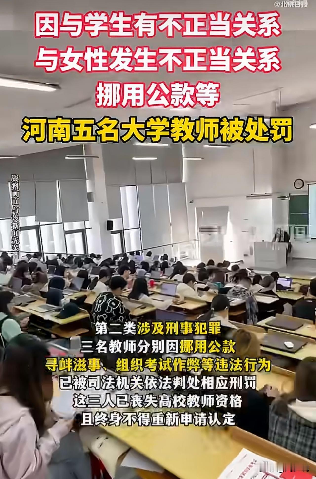 “属实罕见!”近日,河南省教育厅一纸处罚通告引发热议:5名高校教师因严重问题被撤销或丧失教师资格,其中2人涉“与学生不正当关系”等师德失范行为,3人因挪用公款、组织考试作弊等刑事犯罪获刑,终身不得再任教。 此事曝光后,不少网友纷纷怒评:“教师是灵魂工程师,师德失守就是毁学生未来,就该零容忍!” 看完这事,周少也被震惊到了,属实罕见。教育的核心是立德树人,师德师风更是教师队伍的第一标准。这些高校教师失守底线,既辜负“师者”称谓,也给学生造成难以磨灭的伤害。 此次河南教育厅的严厉处罚,彰显了对师德失范、违法失德行为“零容忍”的态度。这事也给所有教师提醒,讲台之上容不得私心杂念,法律与师德的红线绝不能碰。总之,务必守住为人师表的底线。#寻美三湘# #长沙新朋友#