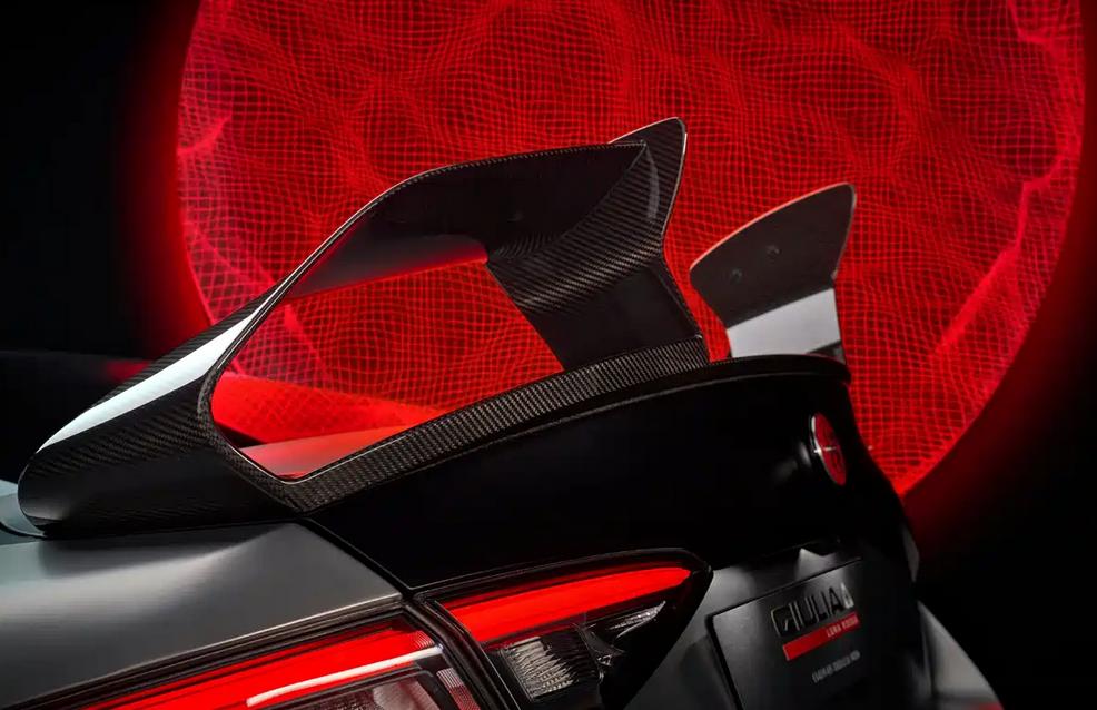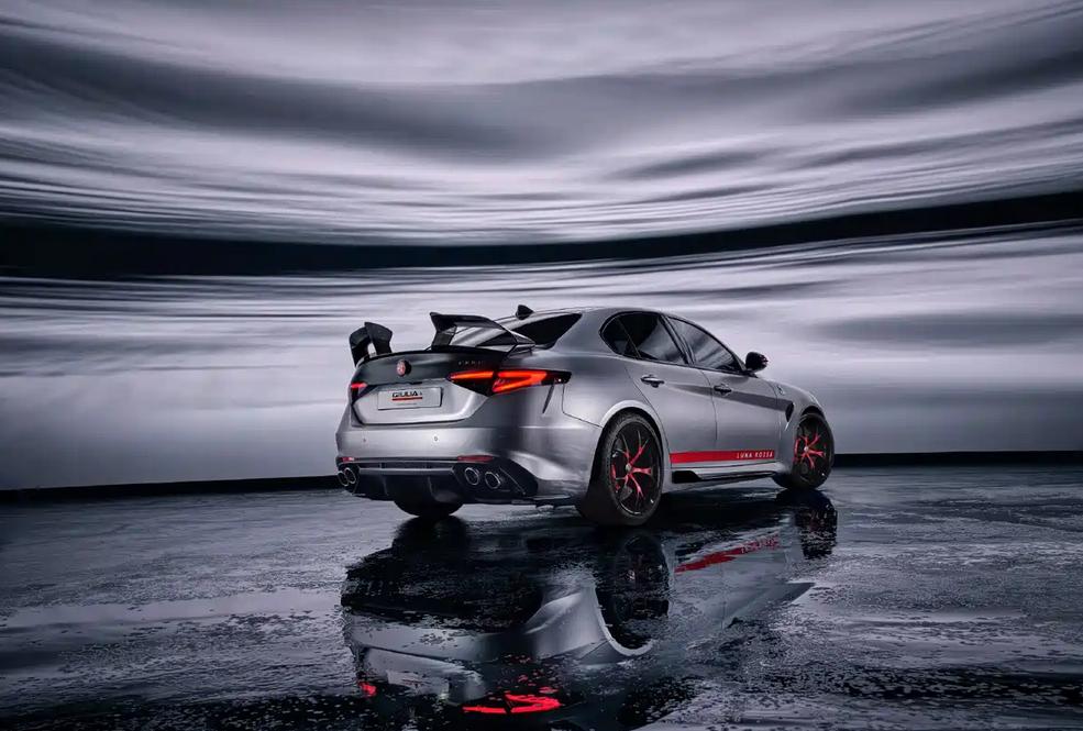 这尾翼设计,一言难尽呐!阿尔法·罗密欧Giulia朱丽叶四叶草特别版官图发布 日前,阿尔法·罗密欧Giulia朱丽叶四叶草Luna Rossa特别版车型官图正式发布,该车由阿尔法·罗密欧与玛莎拉蒂共同建立的BOTTEGAFUORISERIE部门打造,限量仅有10台,成为最稀有的Giulia特别版车型。 配色灵感源于2024年巴塞罗那第37届美洲杯的Luna Rossa AC75帆船,车身采用手工绘制的iridescent配色展现金属质感,侧裙配备红色拉花并镶嵌“Luna Rossa”字样,19英寸轮圈同样加入了红色点缀,配合红色刹车卡钳。 值得一提的是,该车车标也是品牌历史上首次采用红色作为底色。 作为一款特别版车型,最大特点是采用了大量碳纤维空气动力学套件,包括前唇、侧裙以及车尾扰流板等处,其中车尾采用分段式扰流板设计十分新颖,据悉在300km/h可产生140kg下压力,达到普通版车型的5倍。 车辆内部配备Sparco座椅并拥有定制材料和图案刺绣,装饰面板采用了来自Luna Rossa AC75船帆的原版超薄薄膜材料,并加入专属标识展现特殊性。 动力方面依旧搭载2.9T V6双涡轮增压发动机,最大功率520马力,并拥有合机械自锁差速器提升操控稳定性。 点个关注吧!汽节车社,车圈热点资讯每日一扫清!【来自懂车帝车友圈】