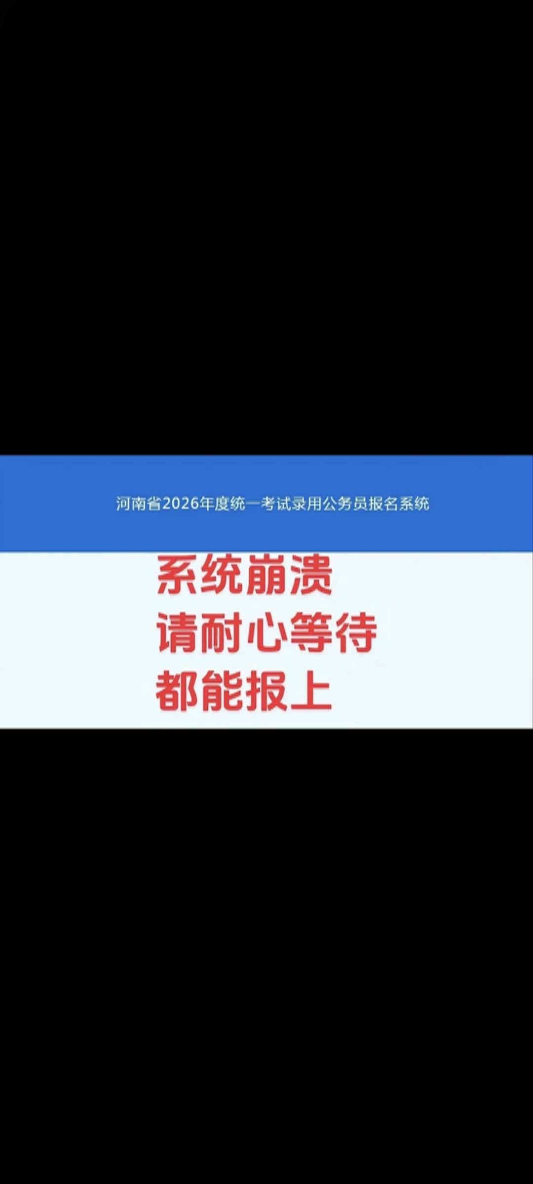【河南省考报名系统崩上热搜!考生蹲4小时刷不出页面,百万考生在线崩溃】 1月12日,河南省考报名进入最后5小时冲刺,“报名系统进不去”的话题强势冲上热搜前五,数百万考生陷入“备考半年,栽在报名”的崩溃中。从早到晚,刷新页面、更换设备、切换网络成为考生的日常,有人换了3个浏览器、4种网络仍遭卡顿,有人卡在身份认证页面,还有人连登录界面都加载失败。 本次省考计划招录10429人,报名时间为1月6日至12日17时,官方早在9日就预警报名高峰,提醒考生避免掐点。但疑似更换的新报名平台却掉了链子,端口不标准、浏览器兼容差,Chrome等主流浏览器都提示报错,卡顿程度远超往年。 更让考生焦虑的是,截至下午2点,官方未发故障说明,也未回应是否延长报名时间,咨询电话常年占线,各地市人社部门也无法干预。评论区满是无奈:“每天学到凌晨,最后卡在报名”“陕西崩了就顺延,河南只剩‘稍后再试’”。 有成功报名者分享“偏方”:用IE浏览器、关防火墙、多开窗口反复刷,硬扛4小时才提交成功。这场报名闹剧,暴露的不仅是技术漏洞,更是服务意识的缺失。希望官方能及时回应诉求,别让考生的努力打水漂。