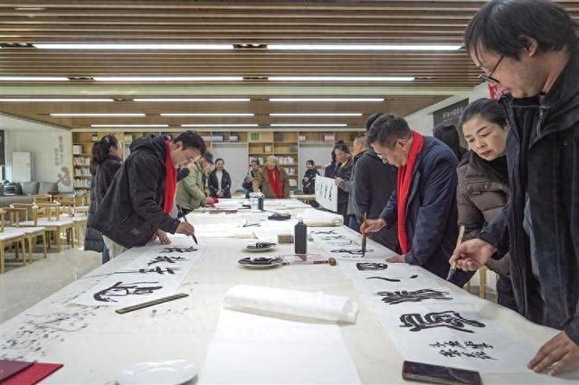 书画家们现场为大家题字。团结报全媒体记者宿中元摄