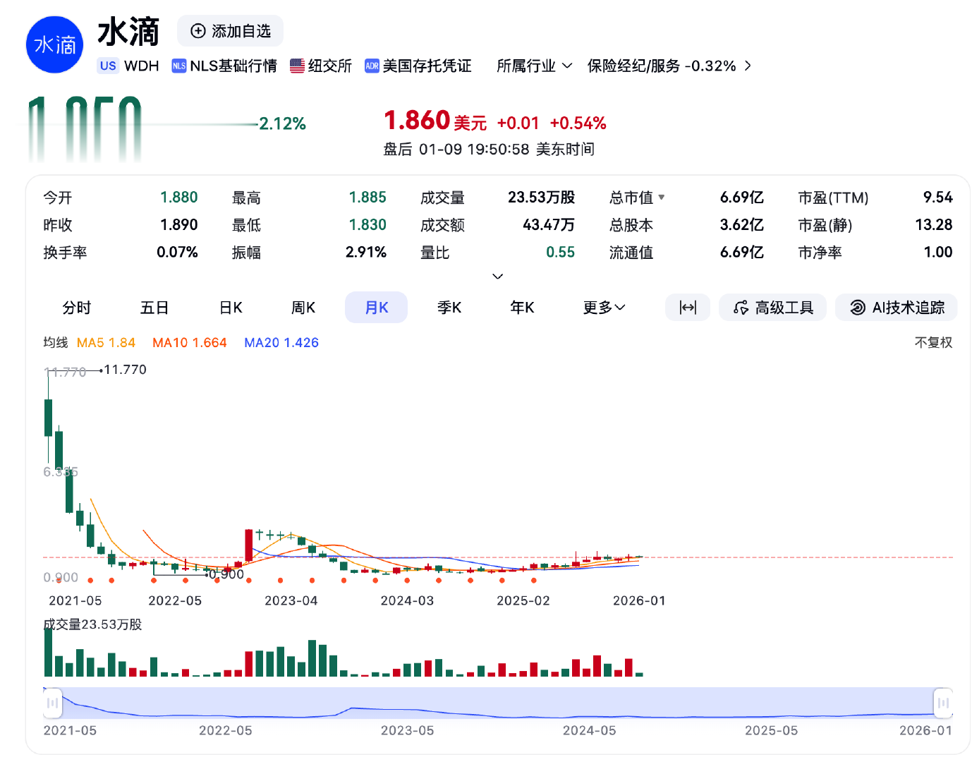 然而,资本市场的反应却揭示了这种模式的脆弱性。尽管水滴公司在纽交所成功上市并实现了盈利,但其股价却经历了断崖式下跌,市值蒸发超过八成。这看似矛盾的现象——盈利的公司与暴跌的股价——实际上反映了投资者对该模式可持续性的深深忧虑。