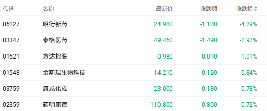 截至收盘,昭衍新药(06127.HK)跌4.29%、泰格医药(03347.HK)跌2.92%、金斯瑞生物科技(01548.HK)跌0.84%。