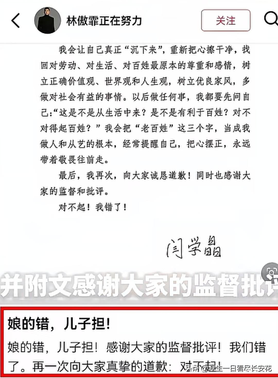 “他们不是知道错了,而是知道害怕了。”闰学晶道歉了,其儿子也道歉了,但网友们并不买账,因为明眼人都知道,这是怕赚不到钱了。闰学晶的傲慢, “我不是认怂的人,我一定是坚持到底的那个人”,如今狠狠打脸了,吃相非常难看。 笔者还是更喜欢她桀骜不驯的样子你能咋滴,能把我咋滴,能咋滴!这才是闰学晶最真实的样子,所表现出来的都是发自内心的,因为还没意识到舆论的力量,所以她是肆无忌惮的,敢骂自己的粉丝是“酸黄瓜”,可见平时有多嫌弃这些曾经追捧过她的家人们。 如果她真的知道错的,在第一时间就应该本能的赔礼道歉,而不是舆论发酵之后再表态,这真的怕了!娱乐圈不管到什么时候都不能太装过头,粉丝跟大众能认可你捧你起来,同样能让你下去,除非你财务自由不干这行也能活的漂亮,要不然你就得低调。