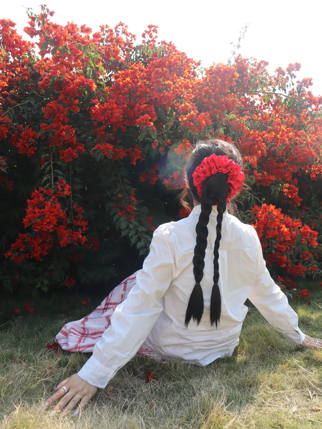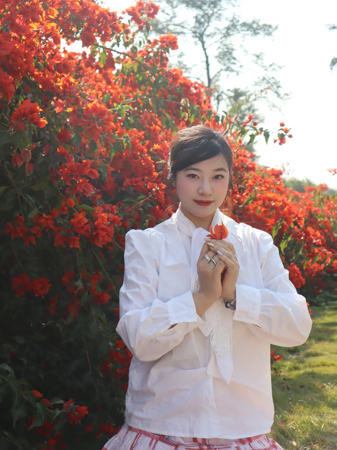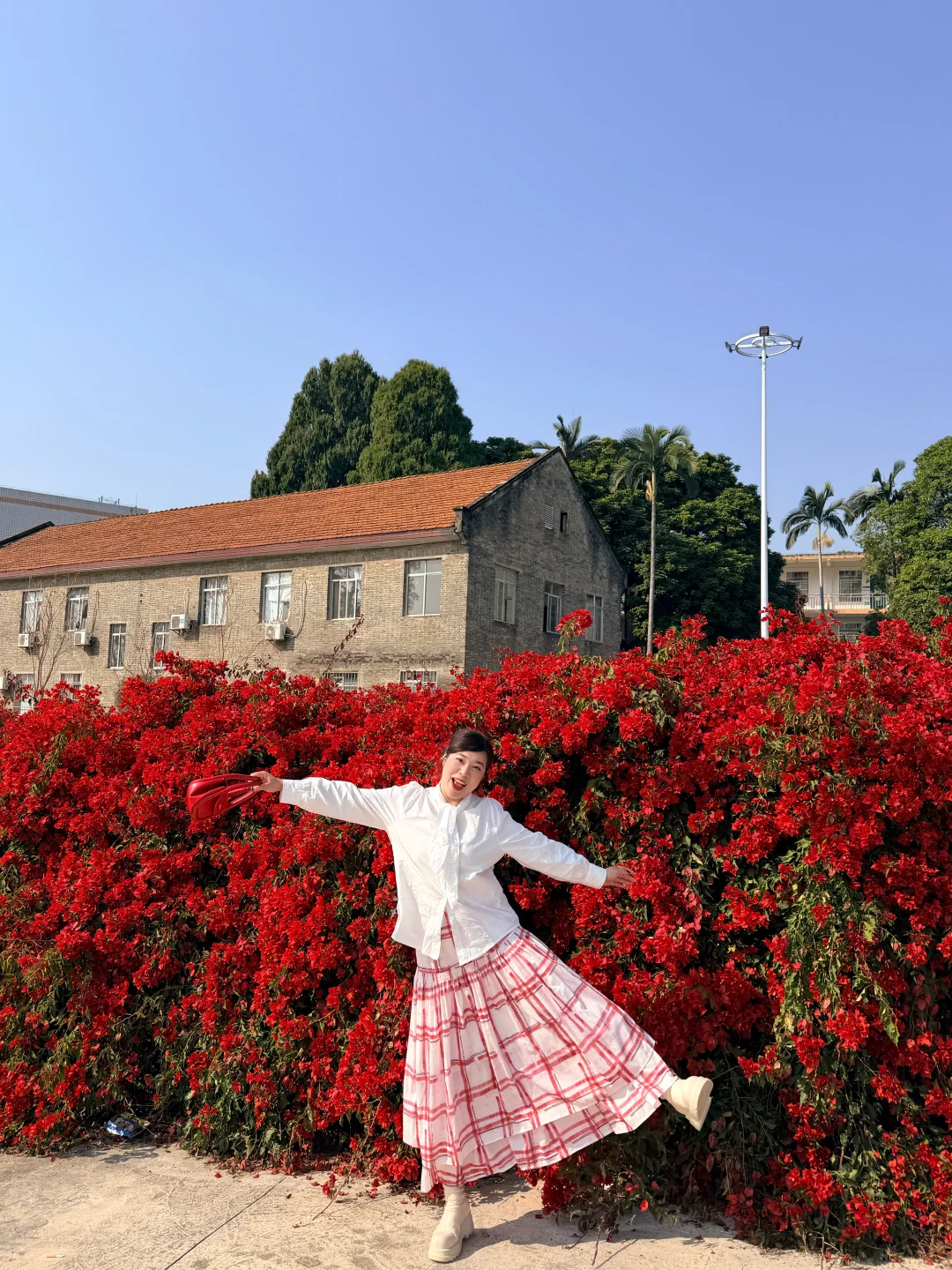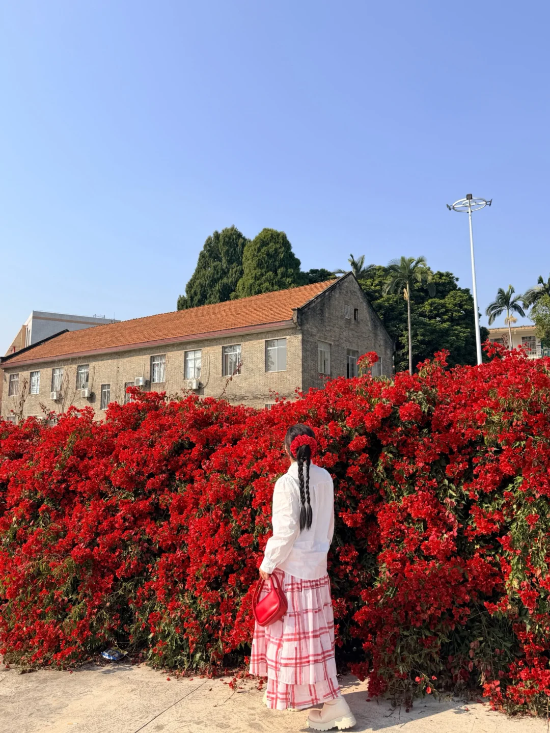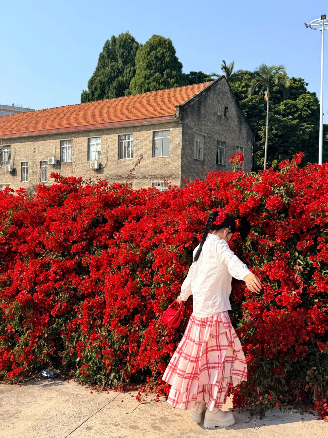最近周末的阳光实在太好了! 遇到了路边茂盛的三角梅花,后面的红砖房竟然别有一番风味!