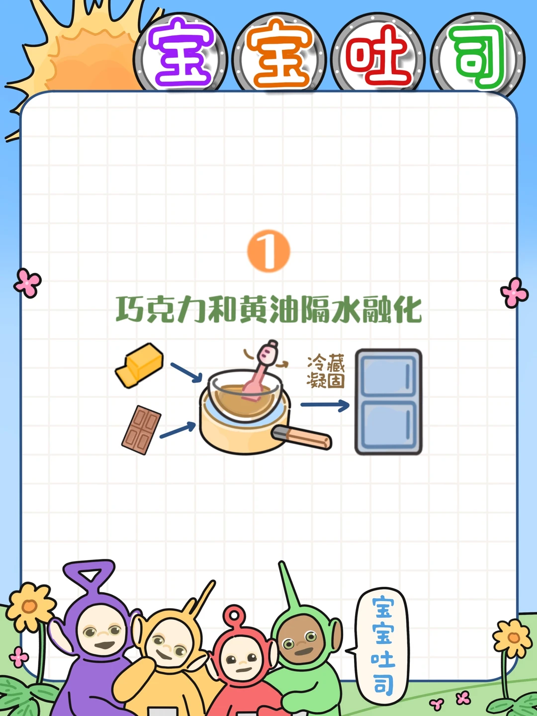 谁懂小小的我守在电视机旁有多馋😋居然一直没看见有,终于在26年自己尝试复刻啦~(其实觉得巧克力淋面更像,但是天线宝宝里面会直接烤,巧克力淋面就化了,所以还是巧克力味吐司吧👍)