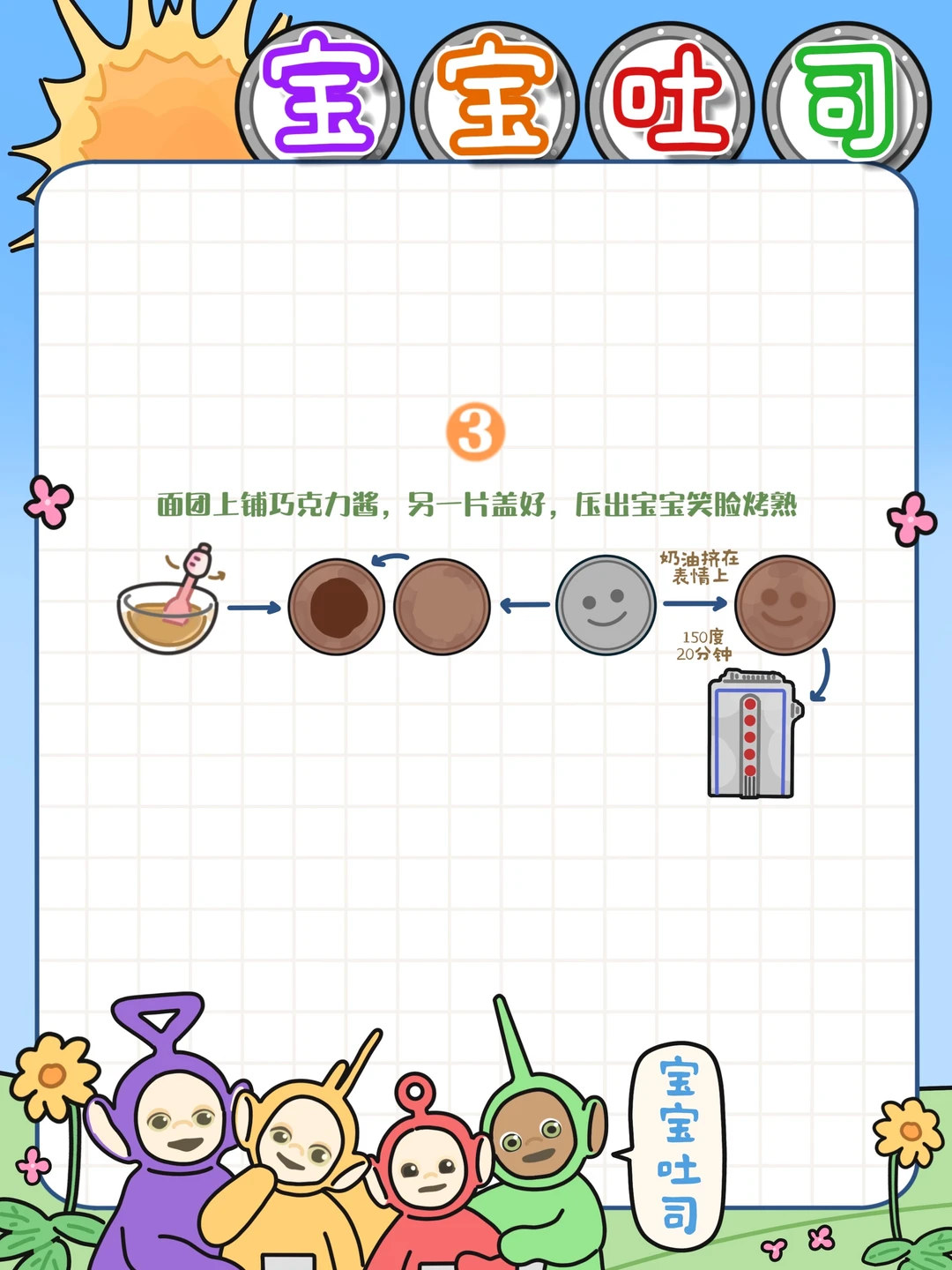 感觉天线宝宝里的宝宝吐司有一点脆脆的口感,可以尝试再复烤一下,烤出一点酥脆感🤔不知道天线宝宝算不算小众动画片,但是我小时候真的很喜欢看👀每天最期待就是看天线宝宝,四个颜色的宝宝每一个都很可爱🥰大学那会还买过他们的玩偶