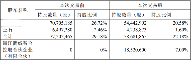 本次股份受让是衢威智合基于对公司未来持续稳定发展的信心及对公司投资价值的认可,未触及要约收购,不会导致公司实际控制人、控股股东发生变更。