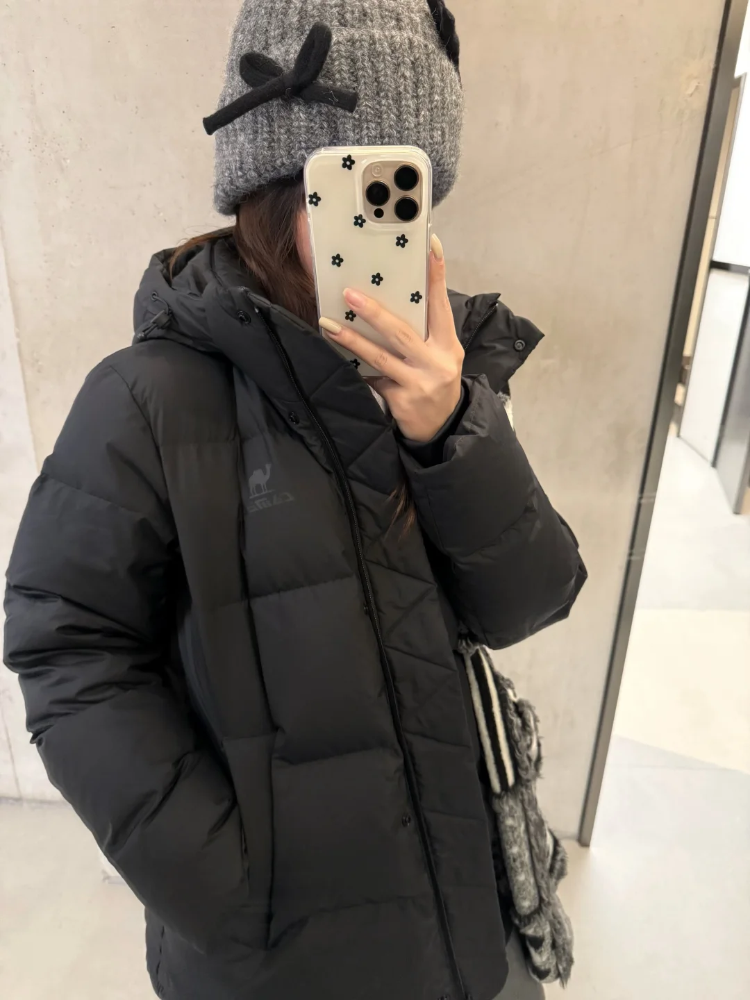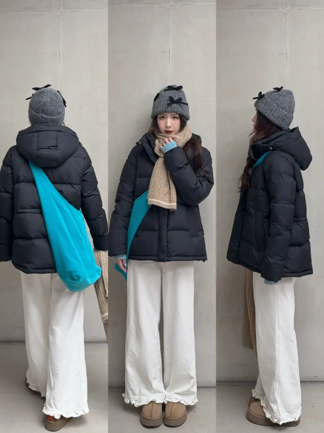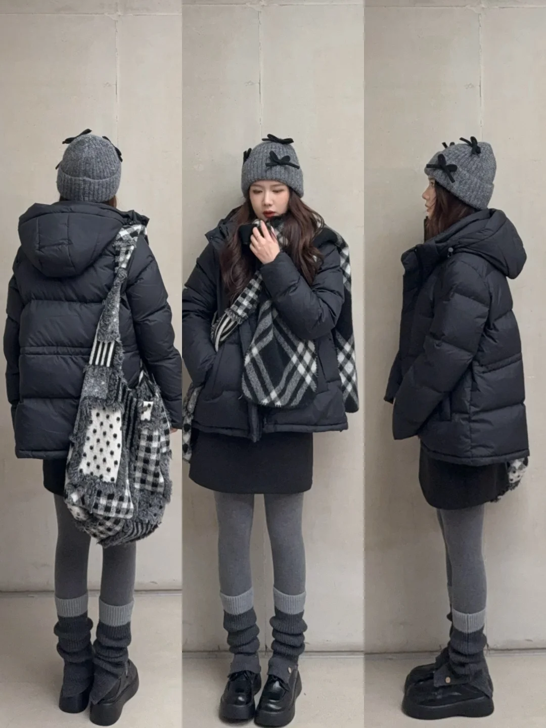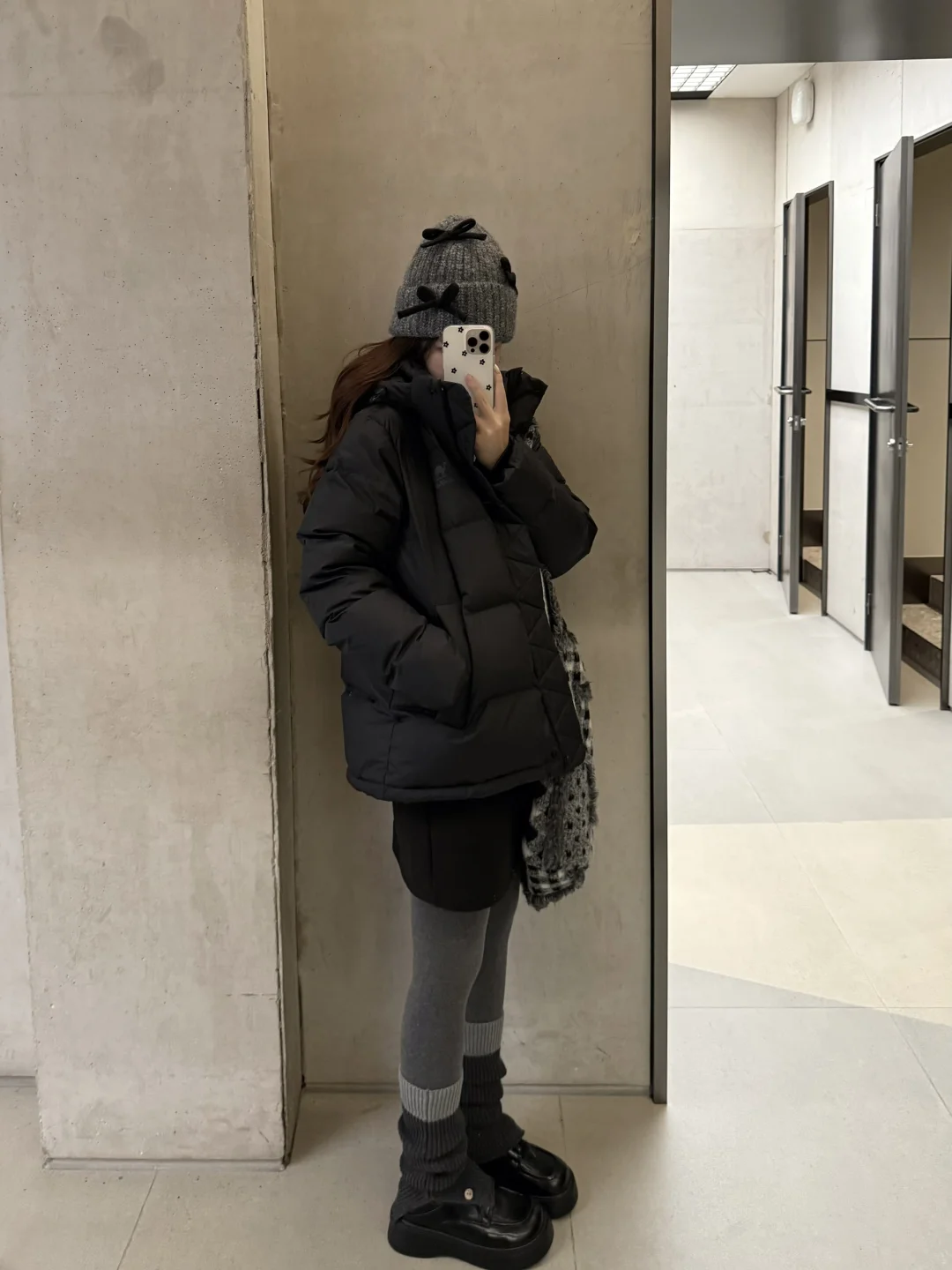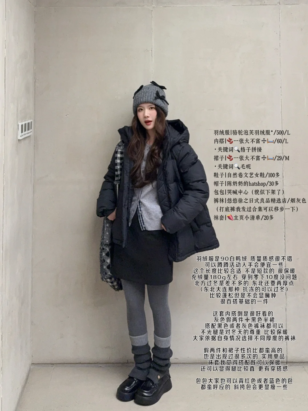 168/106 【敞怀是展示内搭 有拉上拉链的图】 听闻哈尔滨已经下雪了 今年的初雪来得好早! 发两套黑色羽绒服的不同搭配 不露腿的实用主义 有比较韩系可爱一点的 也有日常适合通勤的 穿厚一点的打底裤➕内搭➕雪地靴可以穿到零下十度左右 今年冬天不知道有没有机会去看雪🥹 想念东北~~~