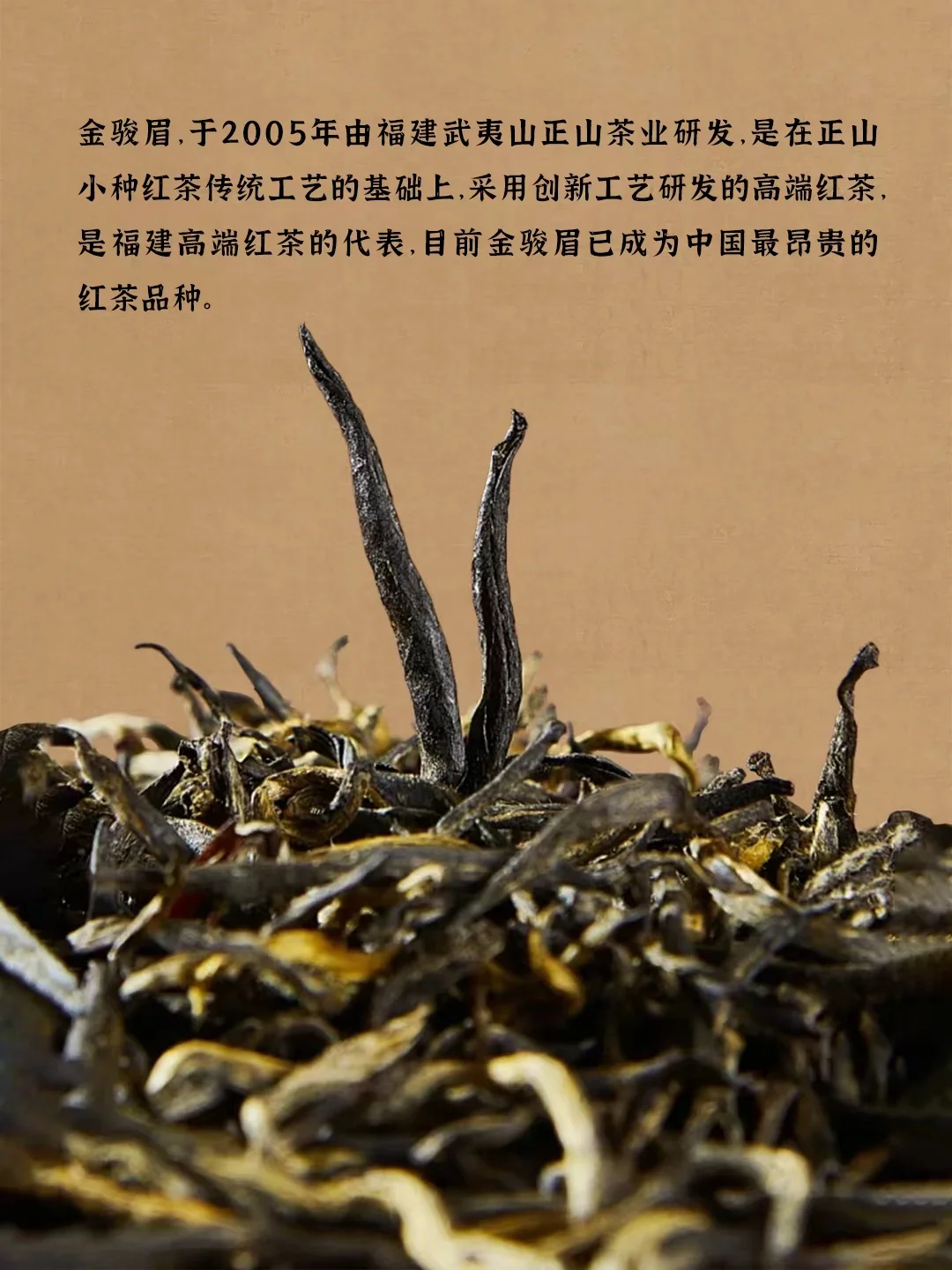 什么是金骏眉? 金骏眉是顶级正山小种红茶,诞生于福建武夷山桐木关,2005年才问世!名字寓意“金贵如骏马眉骨”,只用头春嫩芽制作,5斤茶青才出1斤茶,珍贵度拉满✨ 三大辨识特征 外形:金毫显露,条索细秀如眉,黑金相间。 汤色:琥珀金汤,透亮有“金圈”。 香气:花果蜜香交织,冷杯挂香持久~ 🔥 冲泡秘诀 水温85-90℃(沸水晾30秒),避免烫伤嫩芽! 盖碗或玻璃杯冲泡,前3泡5秒快出汤,可泡10次以上~ 🌟 为什么贵? ✅ 纯手工采制 ✅ 仅限桐木关核心产区 ✅ 数万芽头做一斤