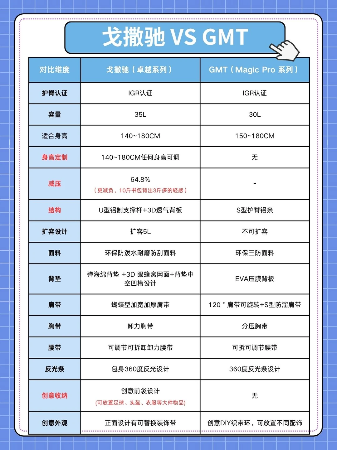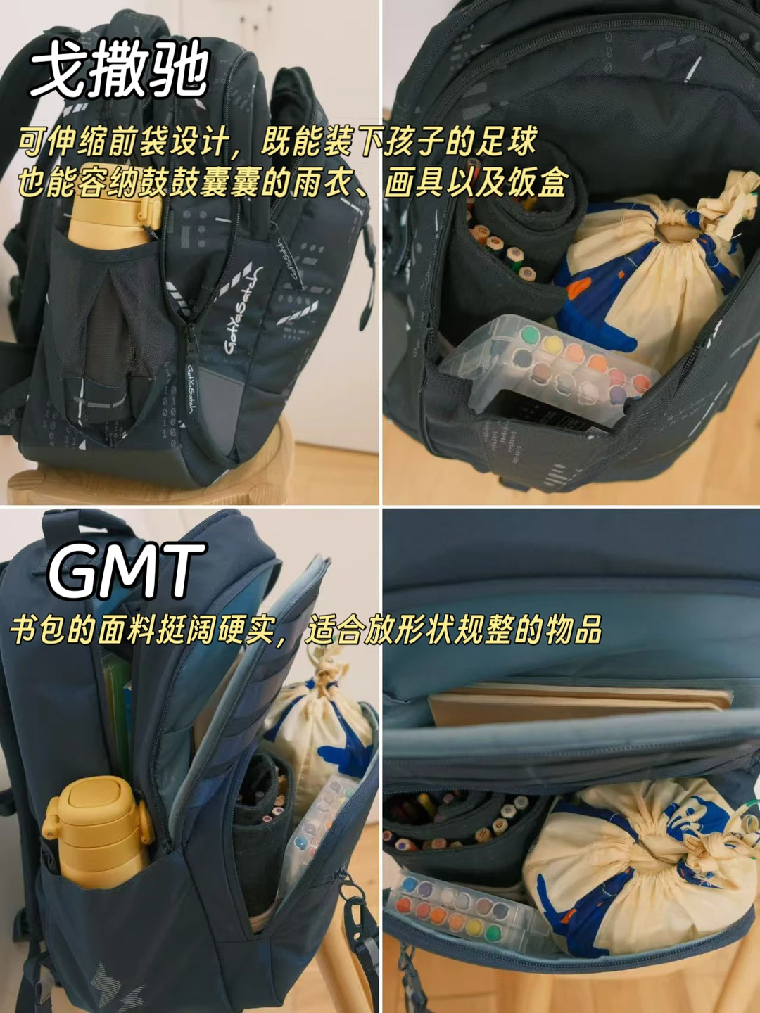 因此,我开始认真研究护脊书包,想给孩子选个合适的!最后挑了戈撒驰和GMT,实测3天,整理出这份超详细对比👇